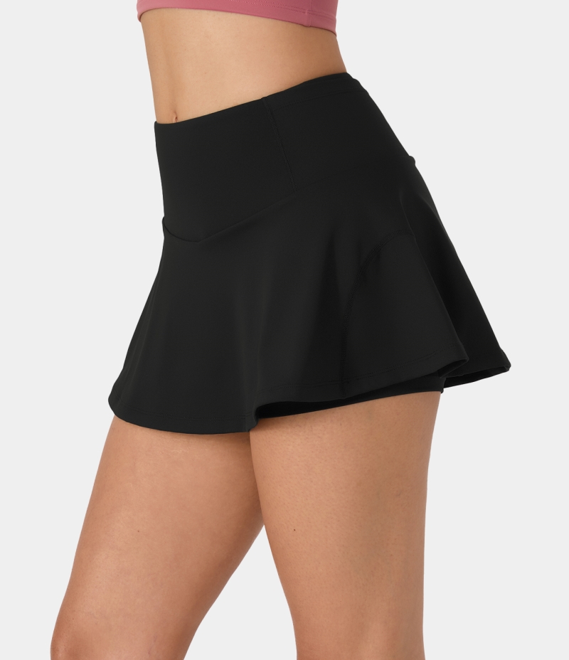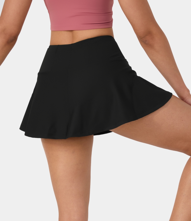 :: Halara Side & Back Waistband Pocket 2-in-1 Flare Tennis Women's Skirts Black | 052618-LZG