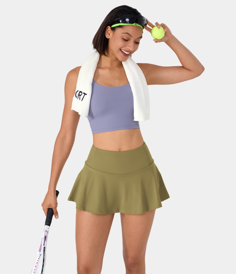 :: Halara Side & Back Waistband Pocket 2-in-1 Flare Tennis Women's Skirts Cedar | 516798-QXN