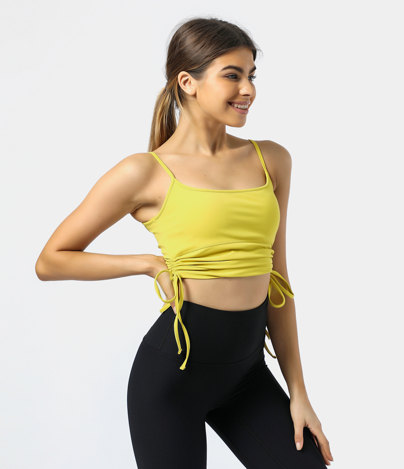 :: Halara Side Drawstring Backless Workout Cropped Cami Women's Tops Goldenrod | UNSCELQ-10