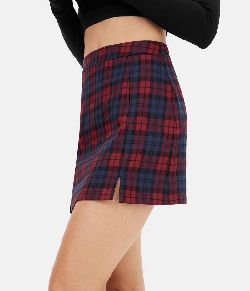 :: Halara Side Split Plaid Mini Casual Women's Skirts Red Blue Plaid | 296514-FAC