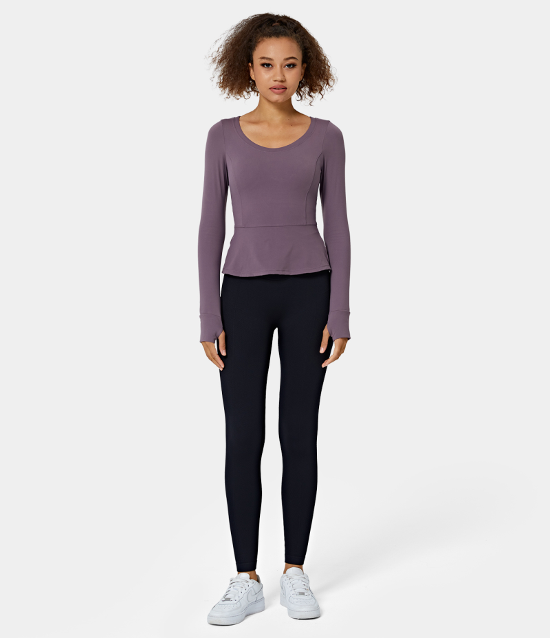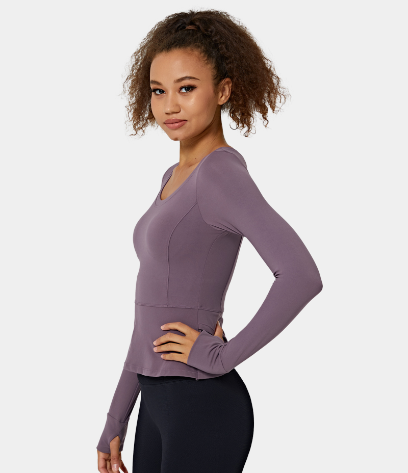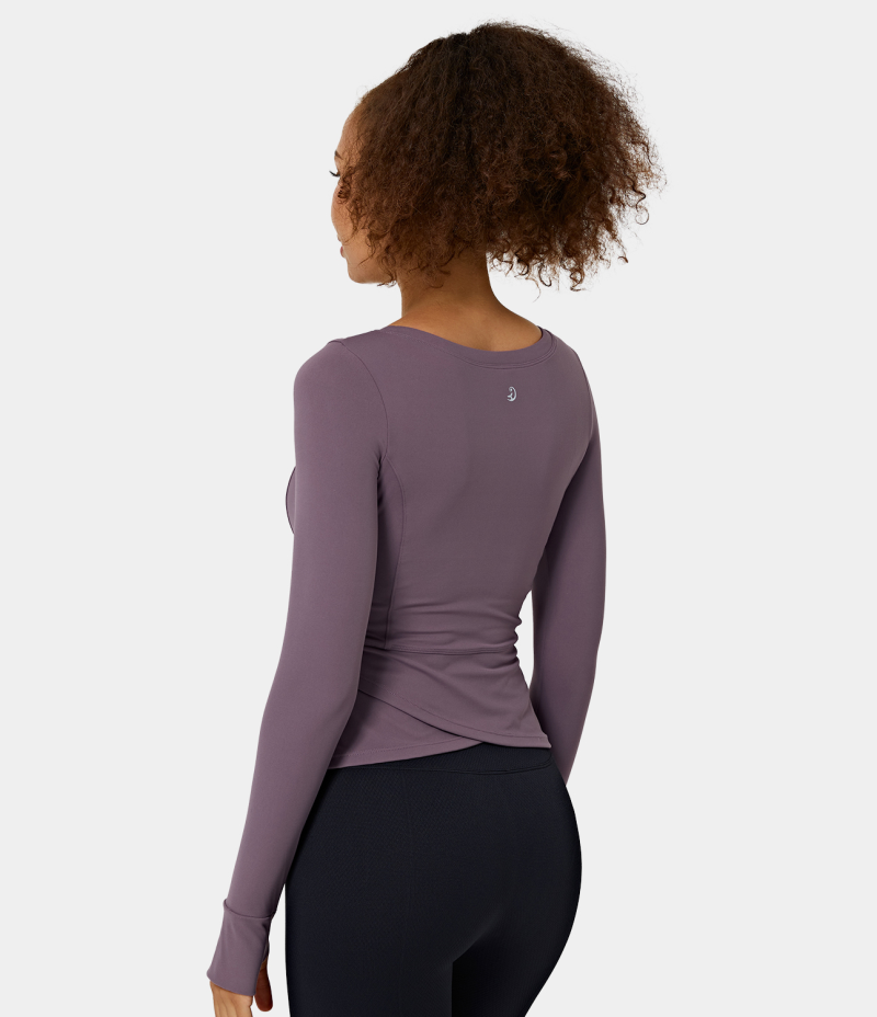 :: Halara Slimming Round Neck Thumb Hole Sports Women's Tops Dove Purple | KUDTIVX-43
