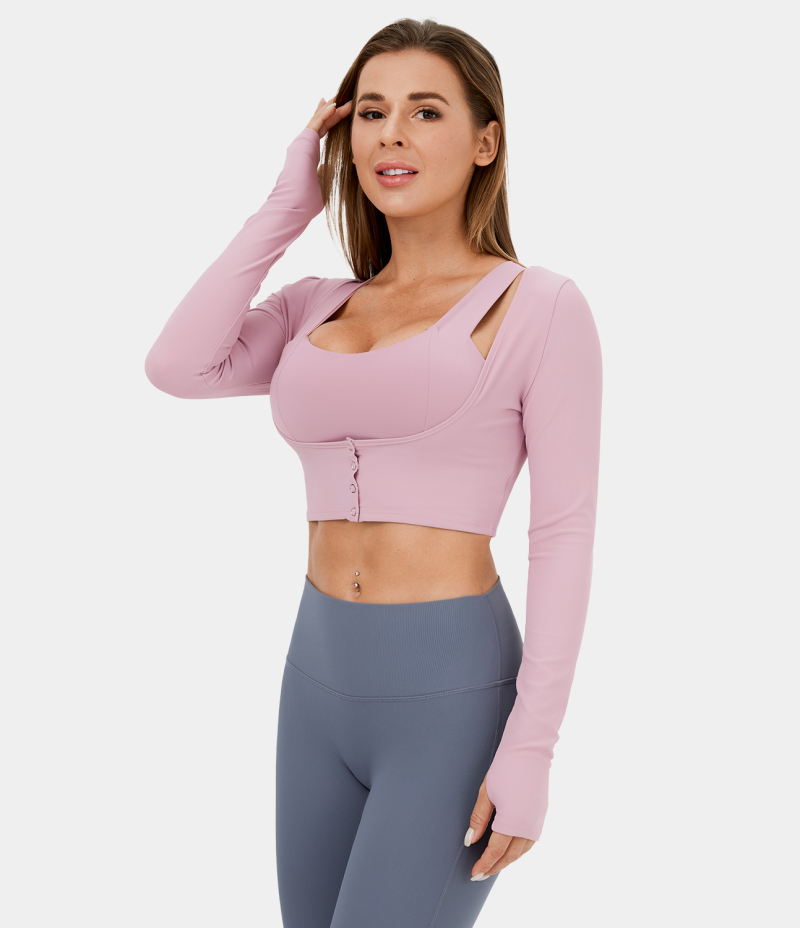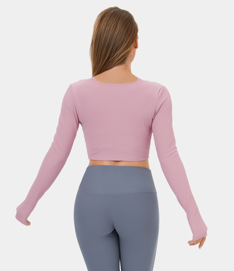 :: Halara Snap Button Thumb Hole Ribbed Knit Cropped Yoga Sports Women's Tops Pale Lilac | VKMNIZF-84