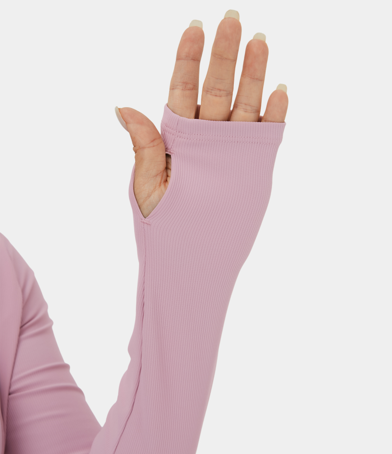 Halara Snap Button Thumb Hole Ribbed Knit Cropped Yoga Sports Women's Tops Pale Lilac | VKMNIZF-84