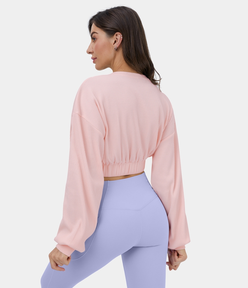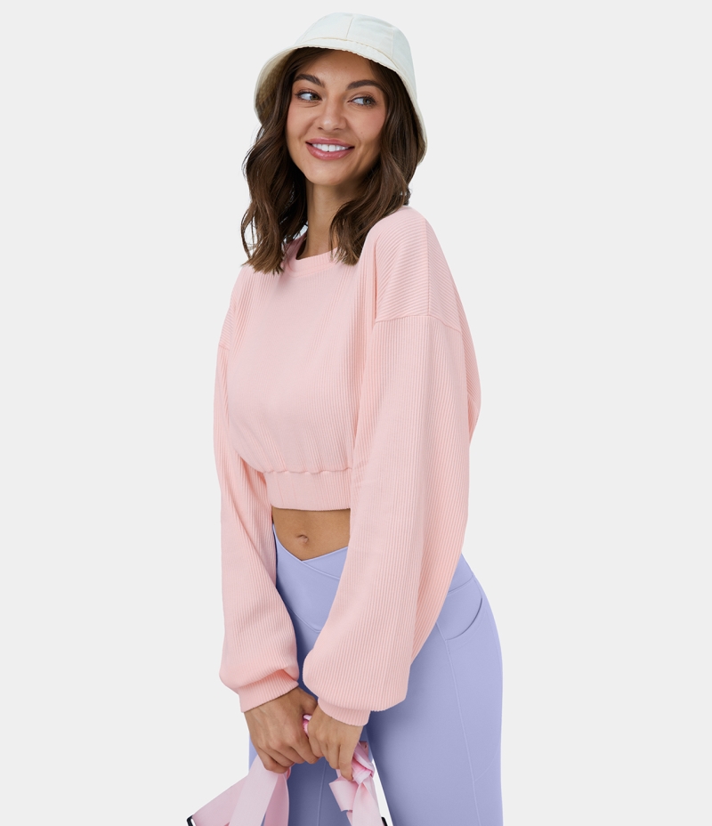 Halara Solid Dropped Shoulder Cropped Casual Sports Sweatshirt Women's Tops Potpourri | EADXGYC-78