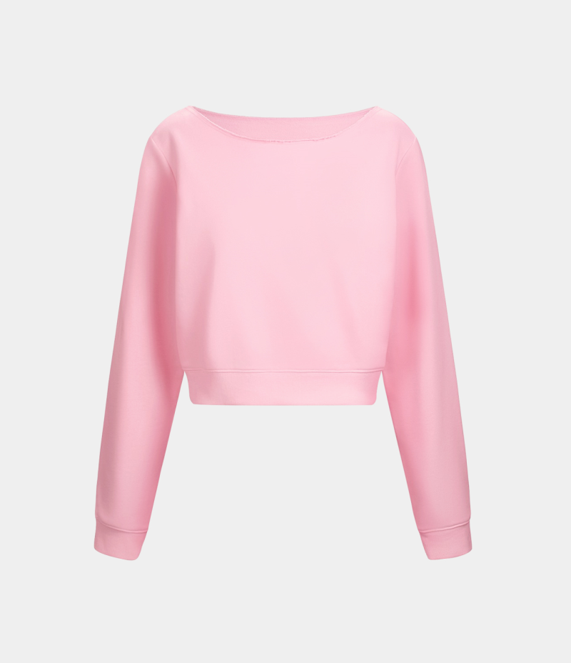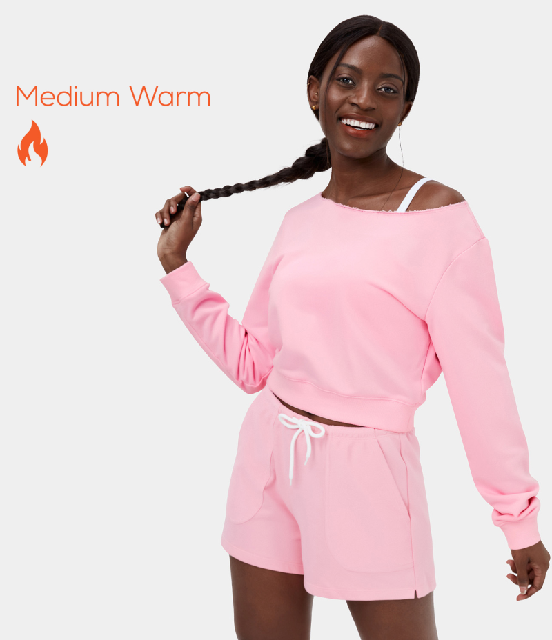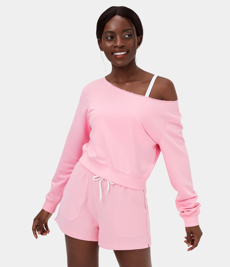 :: Halara Solid One Shoulder Long Sleeve Cropped Fleece Casual Sweatshirt Women's Tops Blushing Bride | YDMRPTE-27