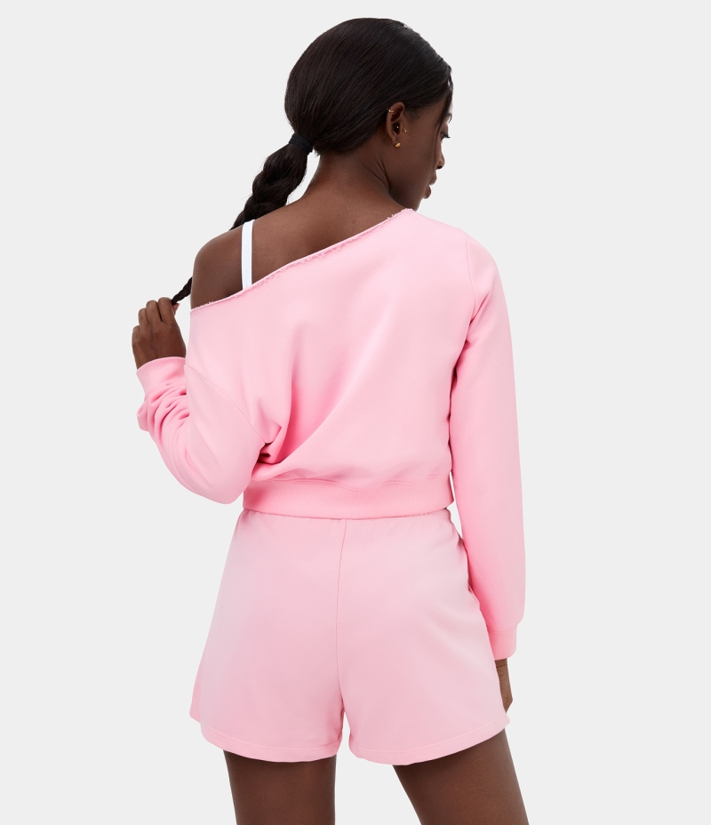 Halara Solid One Shoulder Long Sleeve Cropped Fleece Casual Sweatshirt Women's Tops Blushing Bride | YDMRPTE-27