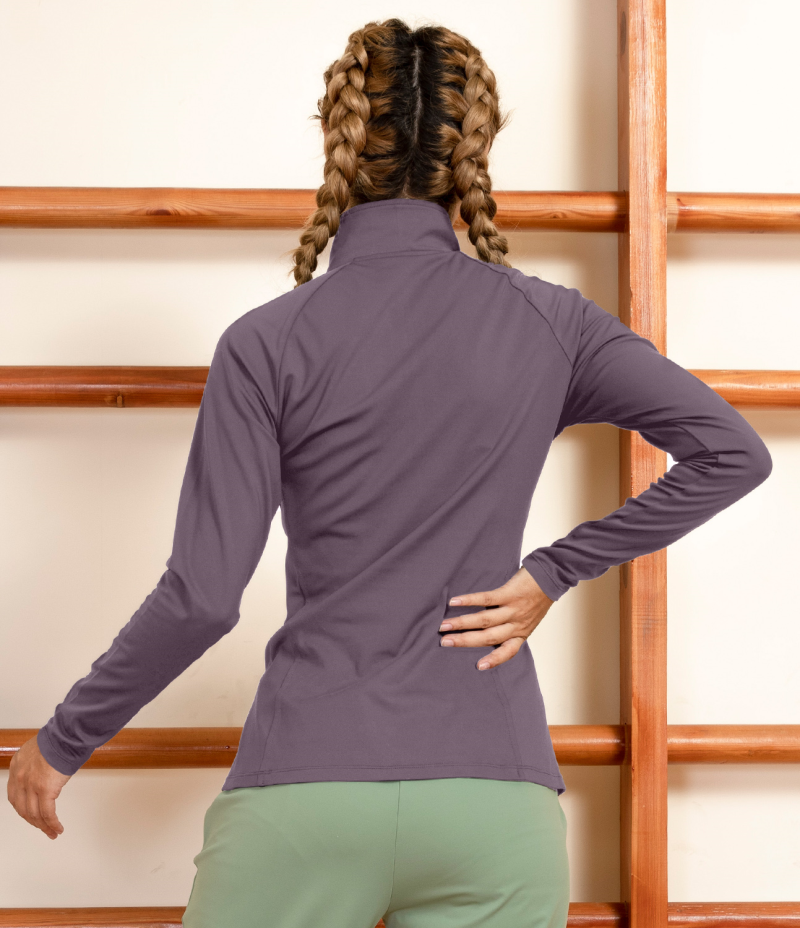 :: Halara Solid Slimming Turtleneck Half Zip Sports Sweatshirt Women's Tops Dove Purple | QYZDEBI-13