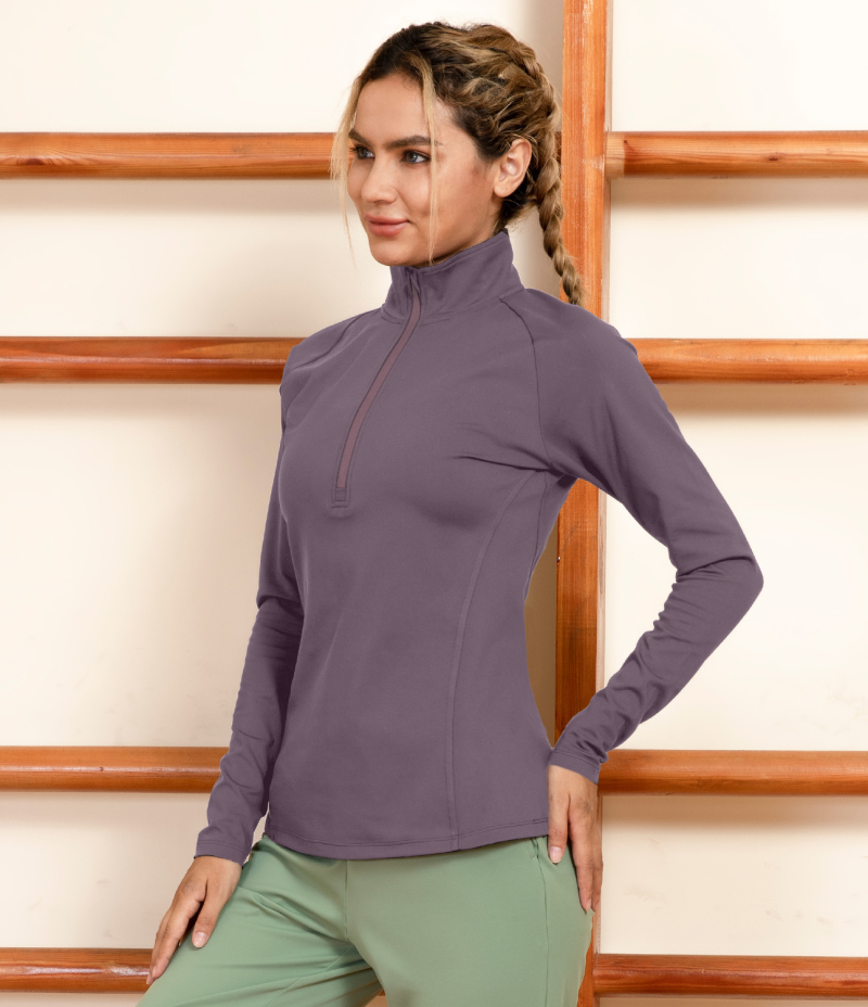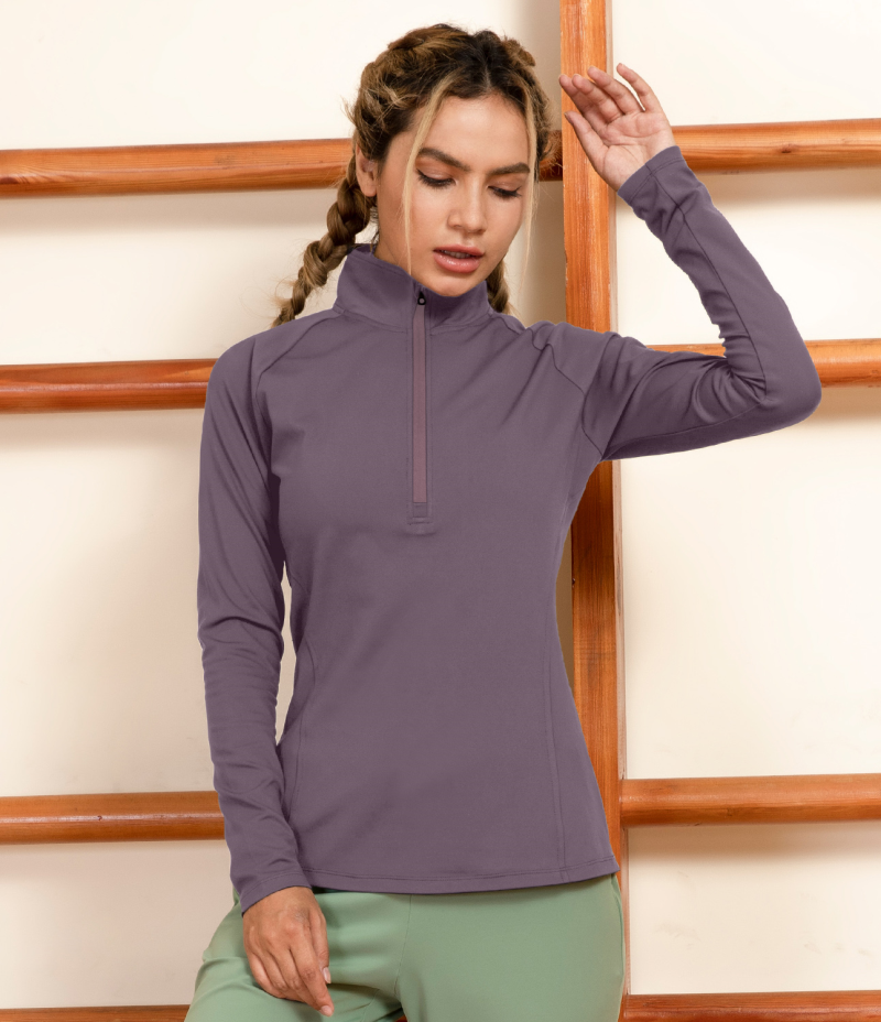 Halara Solid Slimming Turtleneck Half Zip Sports Sweatshirt Women's Tops Dove Purple | QYZDEBI-13