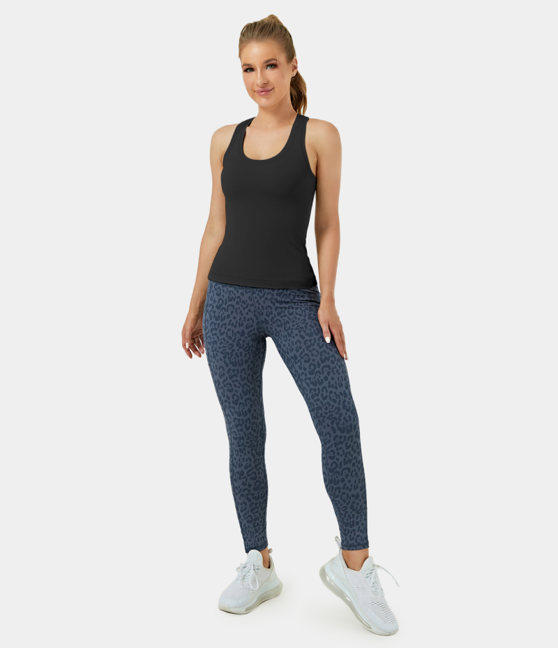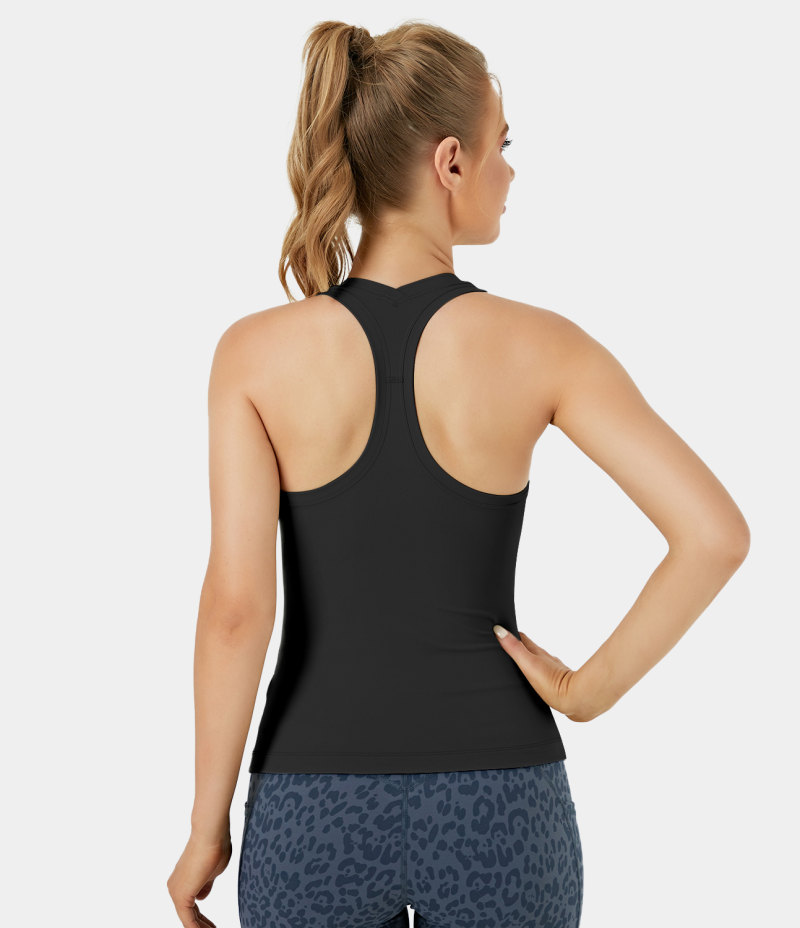 :: Halara Solid Stretchy U Neck Racerback Workout Tank Women's Tops Black | QHMAXLJ-26