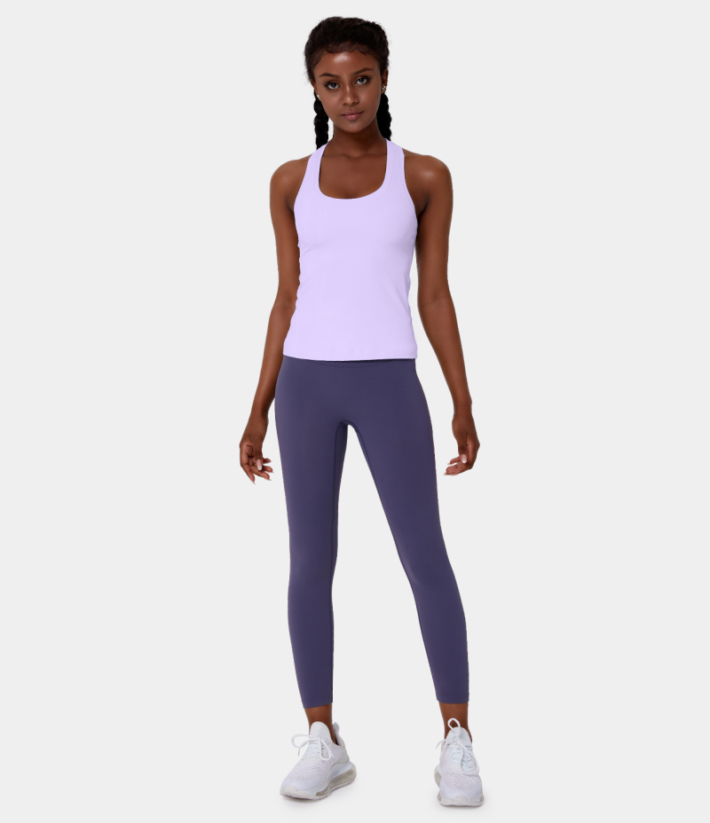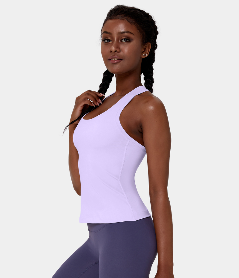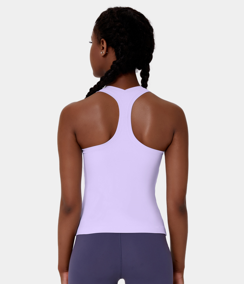 :: Halara Solid Stretchy U Neck Racerback Workout Tank Women's Tops Light Purple | URTKVMP-50