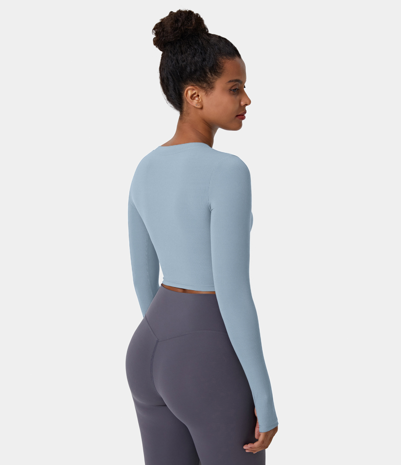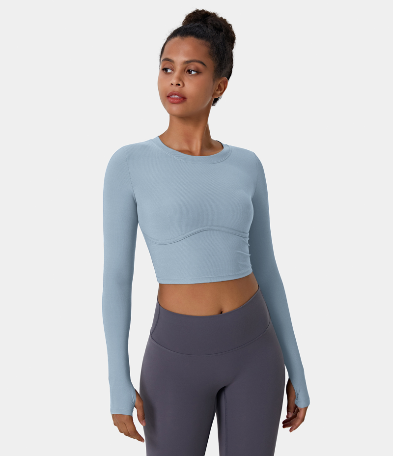 :: Halara Solid Thumb Hole Cropped Sports Women's Tops Dream Blue | QWMAOZV-36