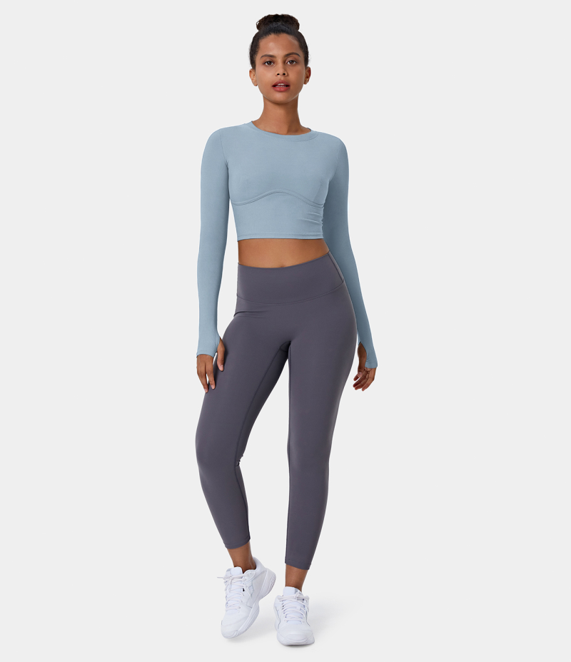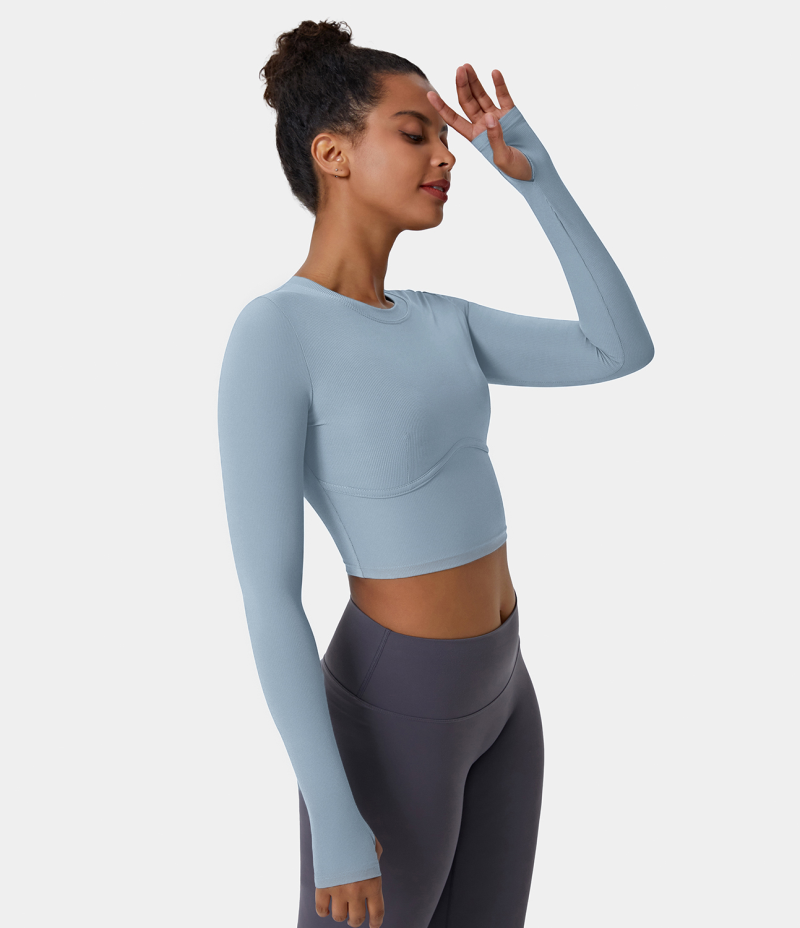 Halara Solid Thumb Hole Cropped Sports Women's Tops Dream Blue | VCBJYWR-95