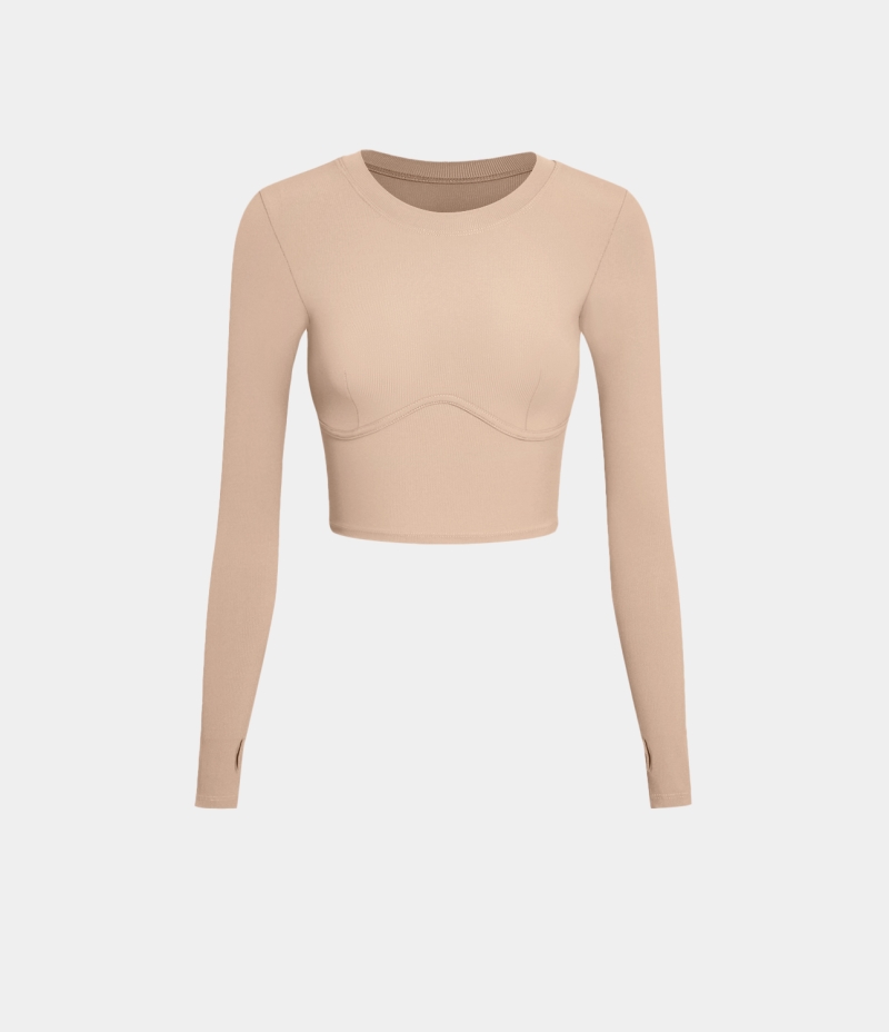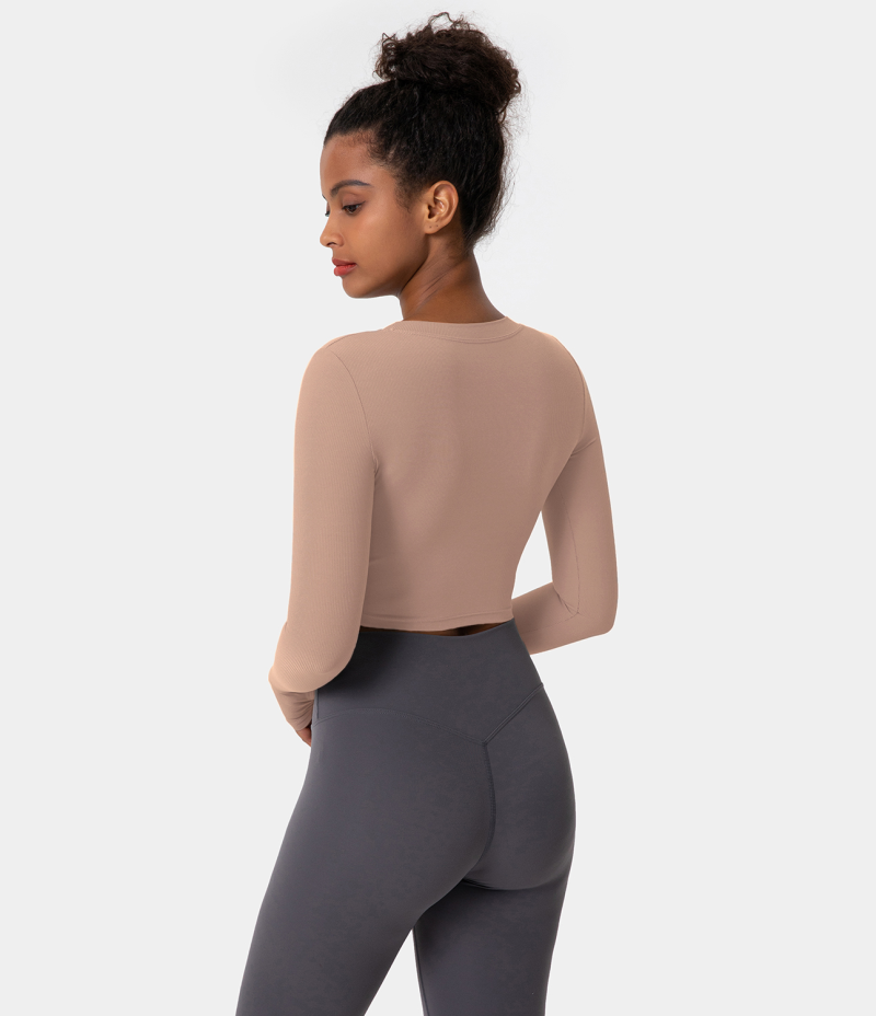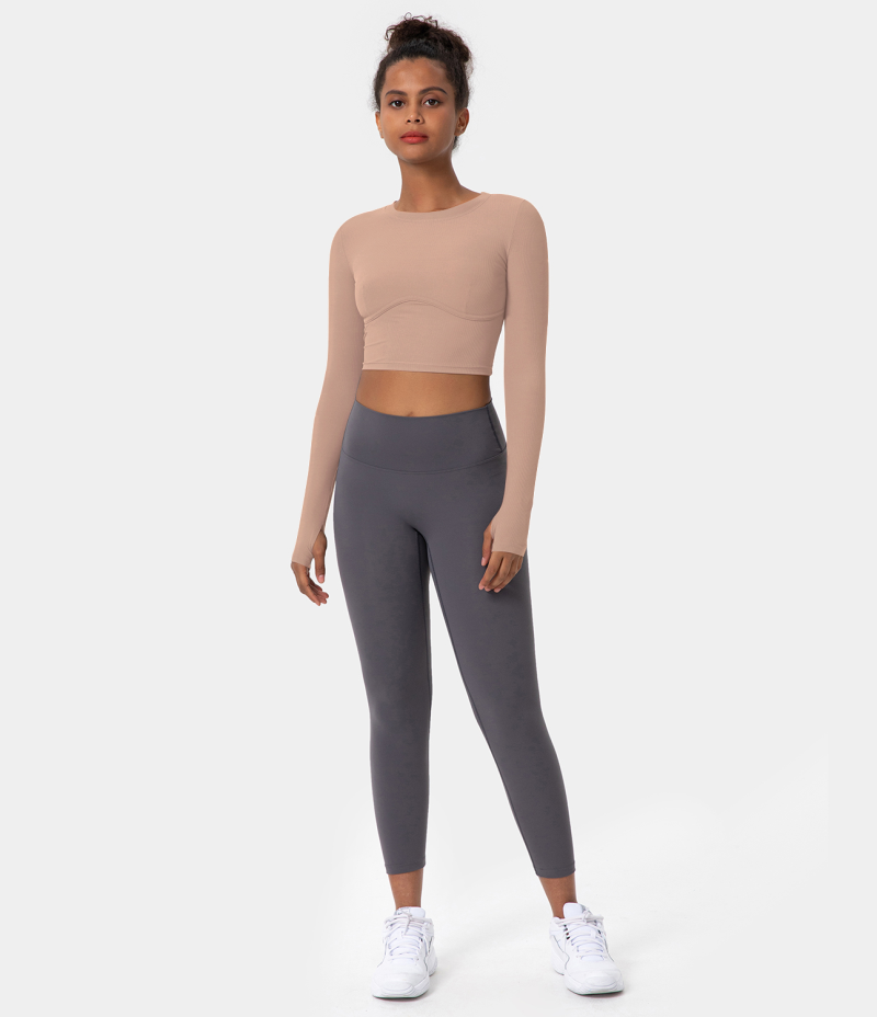 :: Halara Solid Thumb Hole Cropped Sports Women's Tops Pink Tint | XHKRUFQ-29