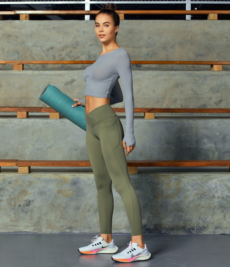 :: Halara Solid Thumb Hole Cropped Sports Women's Tops Silver | PDEHKMC-29