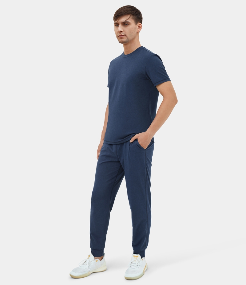 :: Halara SouffleSoft Elastic Waistband Pocket Couple Men Women's Jogger Dark Blue | 076932-CUJ