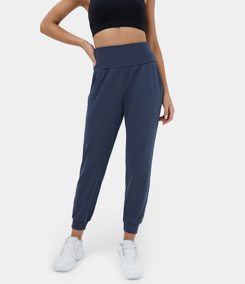 :: Halara SouffleSoft Super High Waisted Foldover Side Pocket Yoga Women's Jogger Dark Blue | 981054-SIV