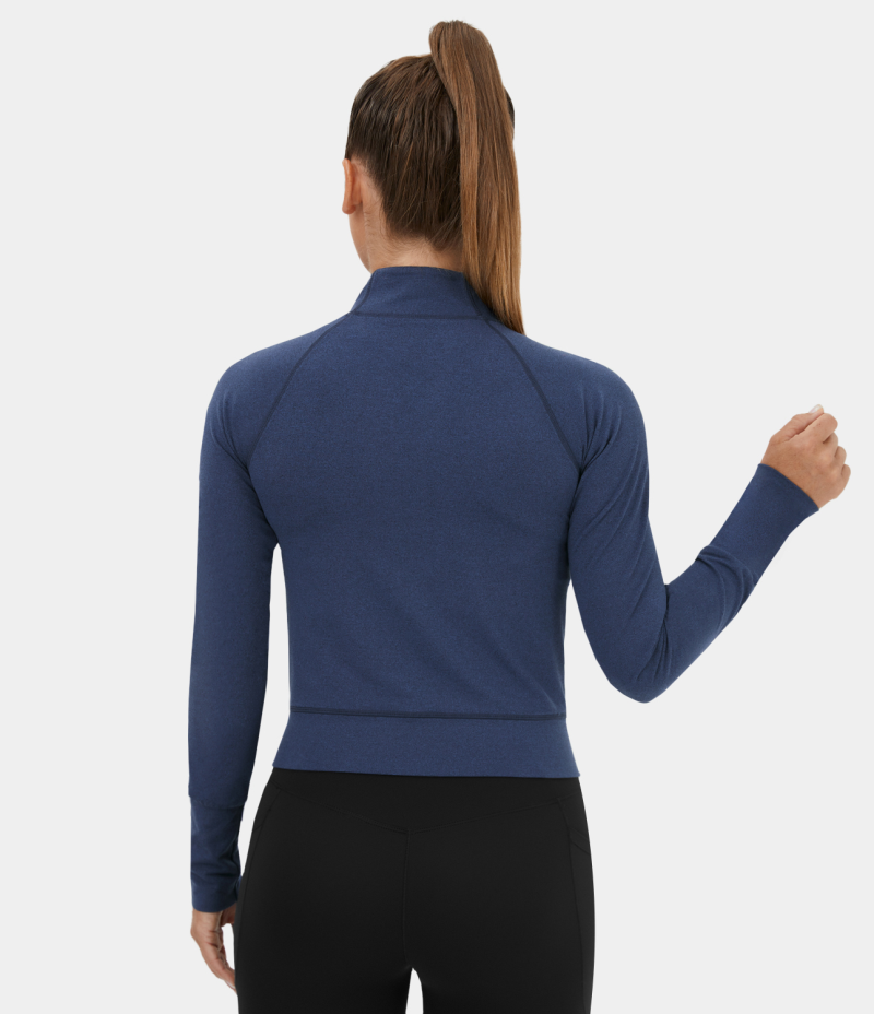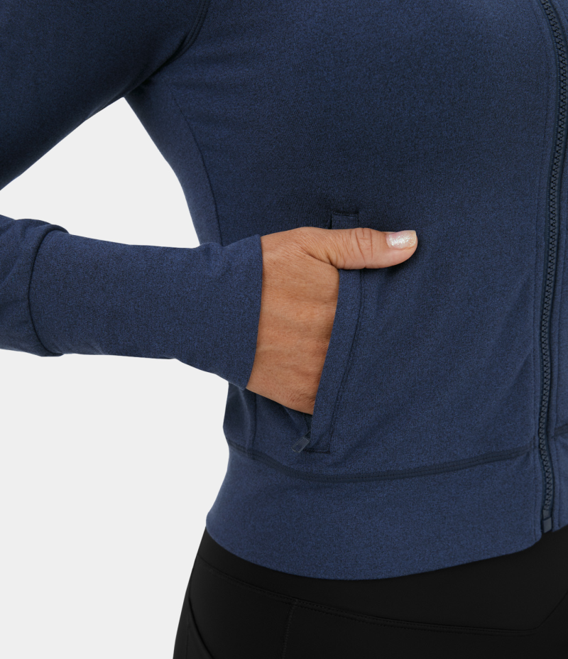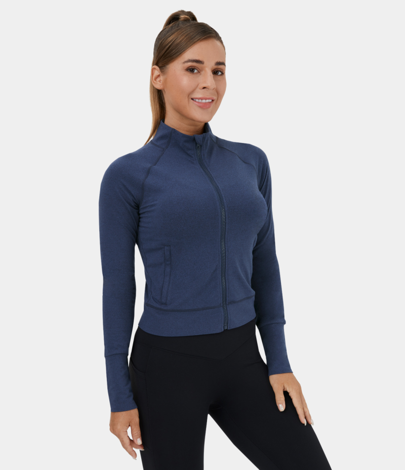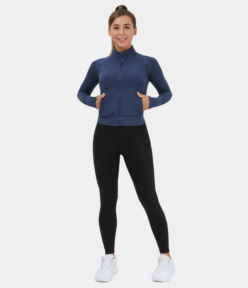 Halara SouffleSoft Zipper Front Side Pocket Cropped Casual Jacket Women's Tops Dark Blue | JZYTCQB-86