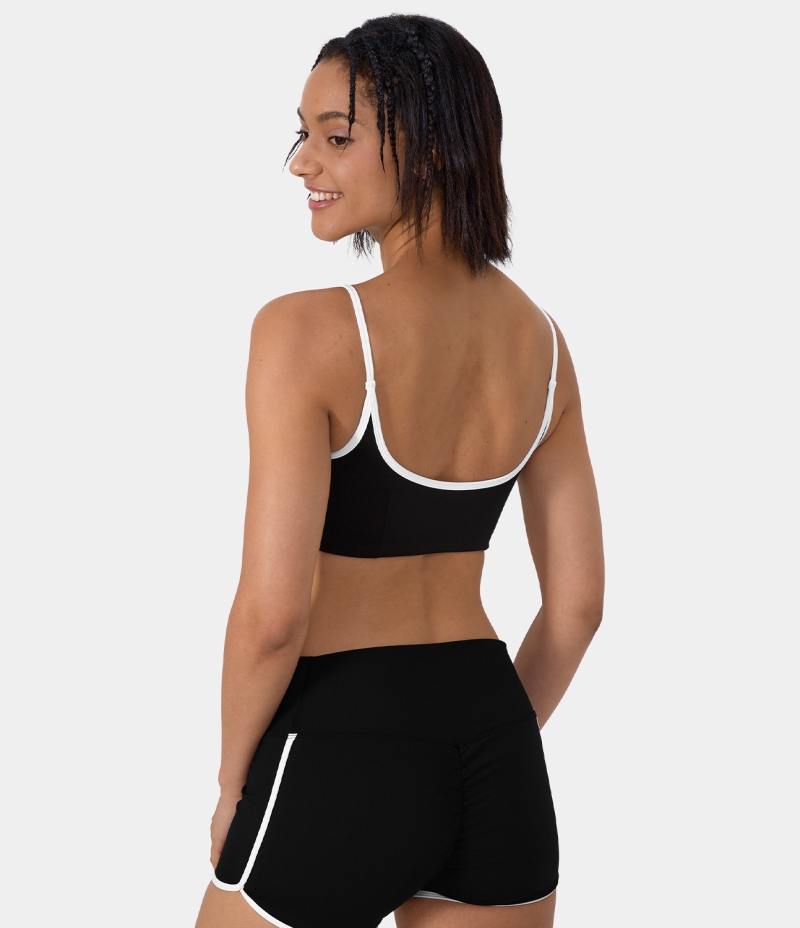 Halara Spaghetti Strap Color Block Cropped Yoga Tank Women's Tops Black | BOKFUWP-46