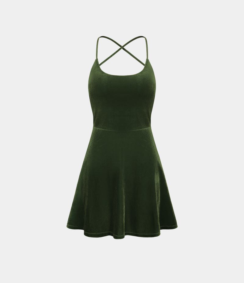 :: Halara Spaghetti Strap Crisscross Lace Up Velvet Mini Casual Women's Dress Kombu Green | 167390-YEA