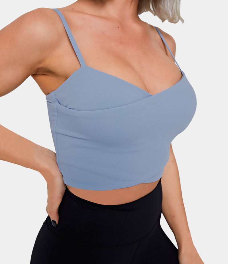 :: Halara Spaghetti Strap Crossover Plain Cropped Tank Women's Tops Light Baby Blue | AMIDOXC-09