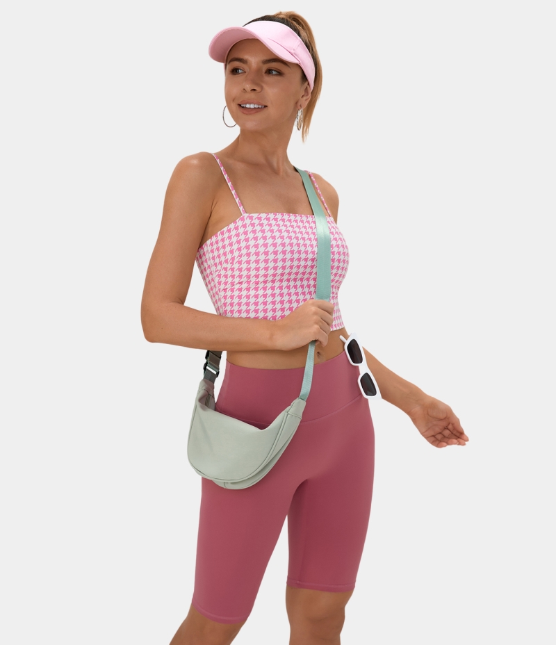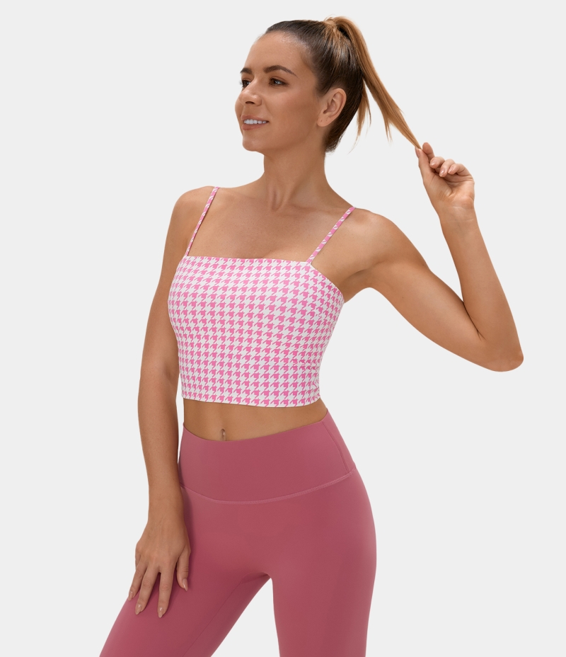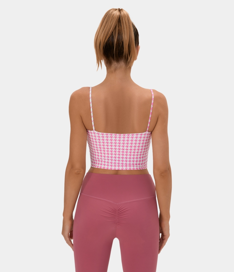 Halara Spaghetti Strap Houndstooth Cropped Yoga Tank Women's Tops Raspberry Houndstooth | SMVLNPT-05