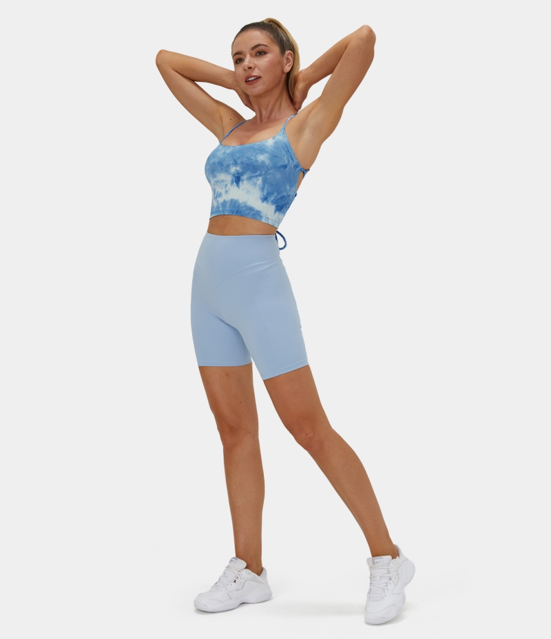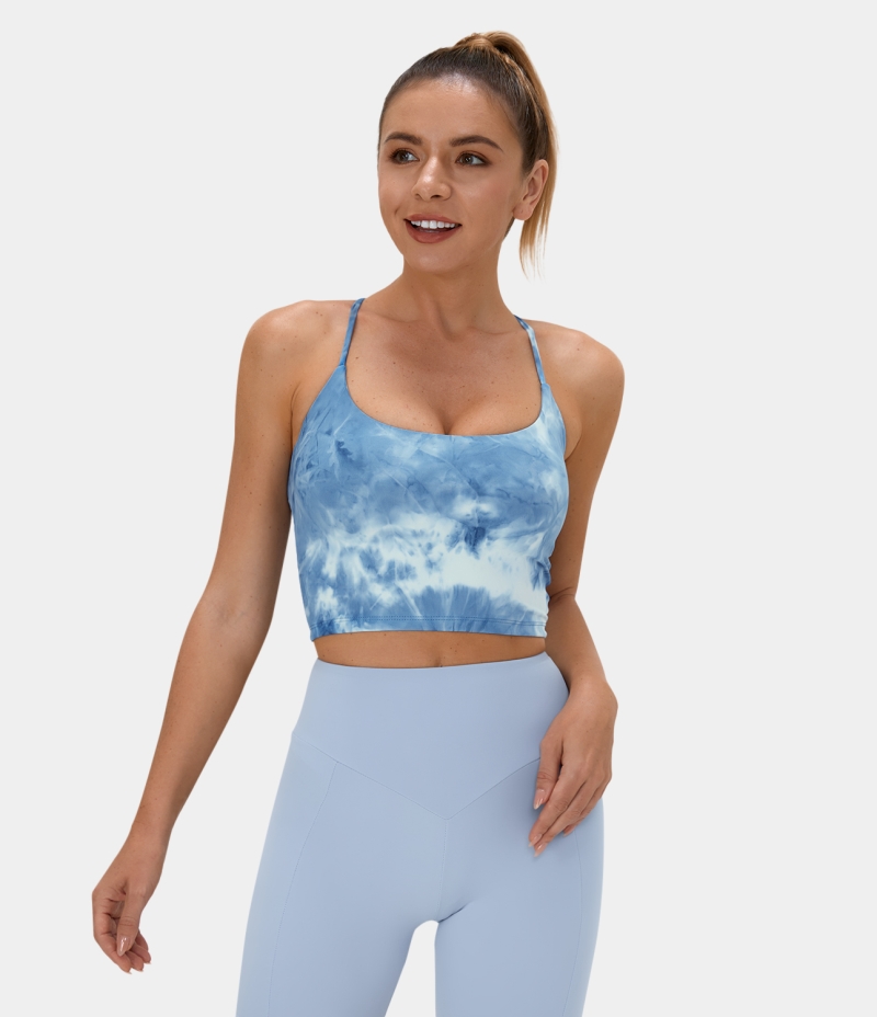 Halara Spaghetti Strap Tie Dye Crisscross Lace Up Cropped Tank Women's Tops Tie-dye Dark Blue | OXTBUHV-38