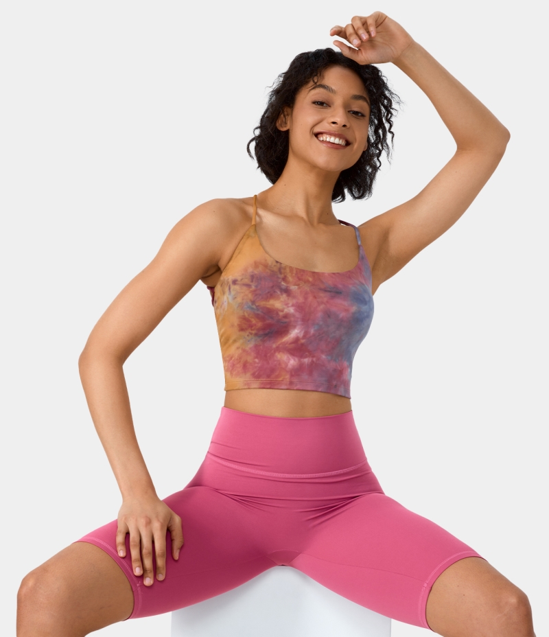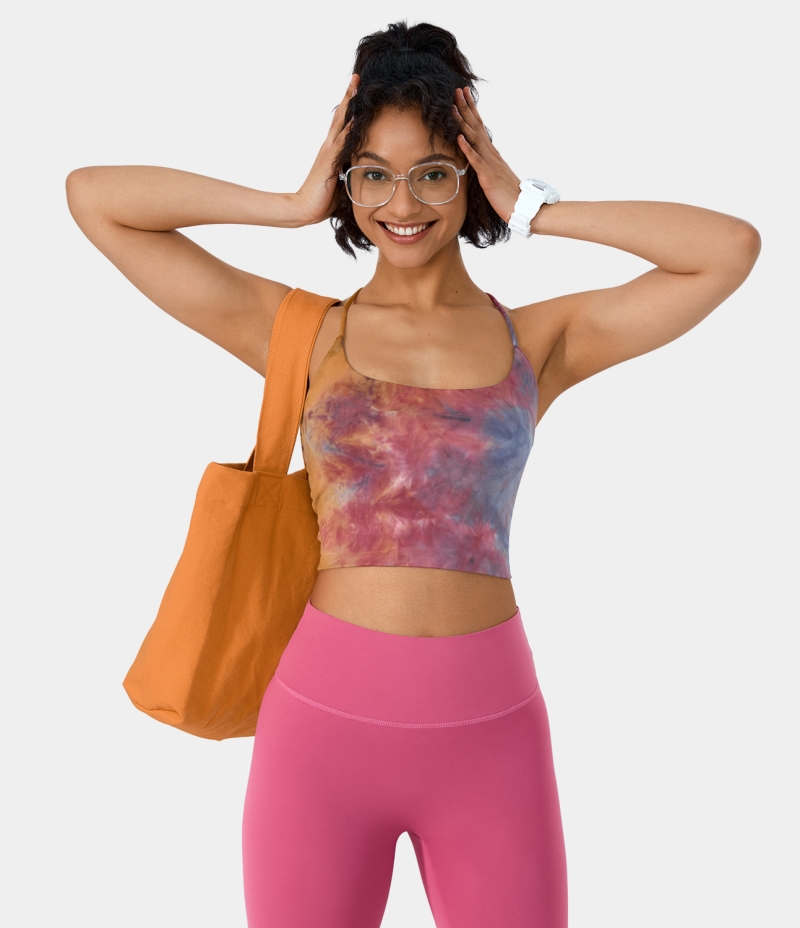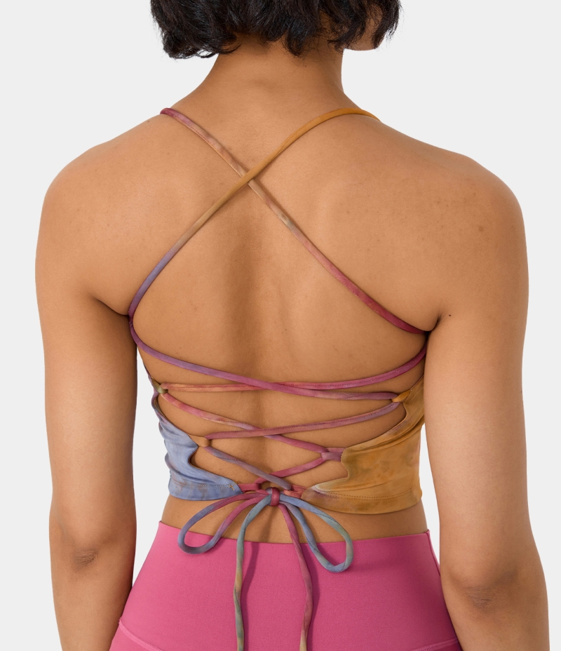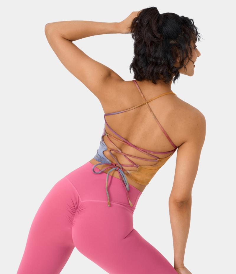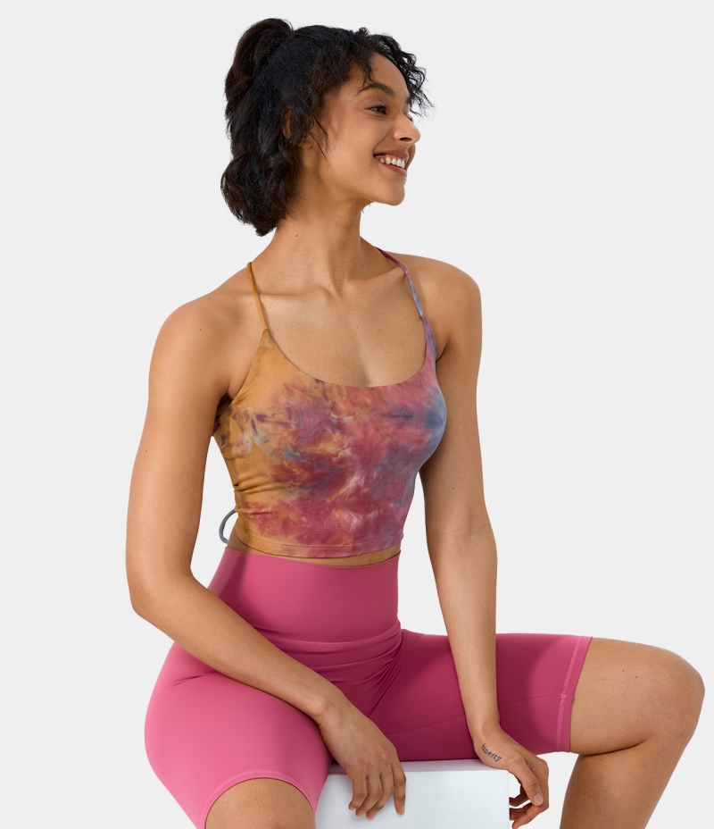Halara Spaghetti Strap Tie Dye Crisscross Lace Up Cropped Tank Women's Tops Tie-dye Red Yellow | DPBXLMR-05