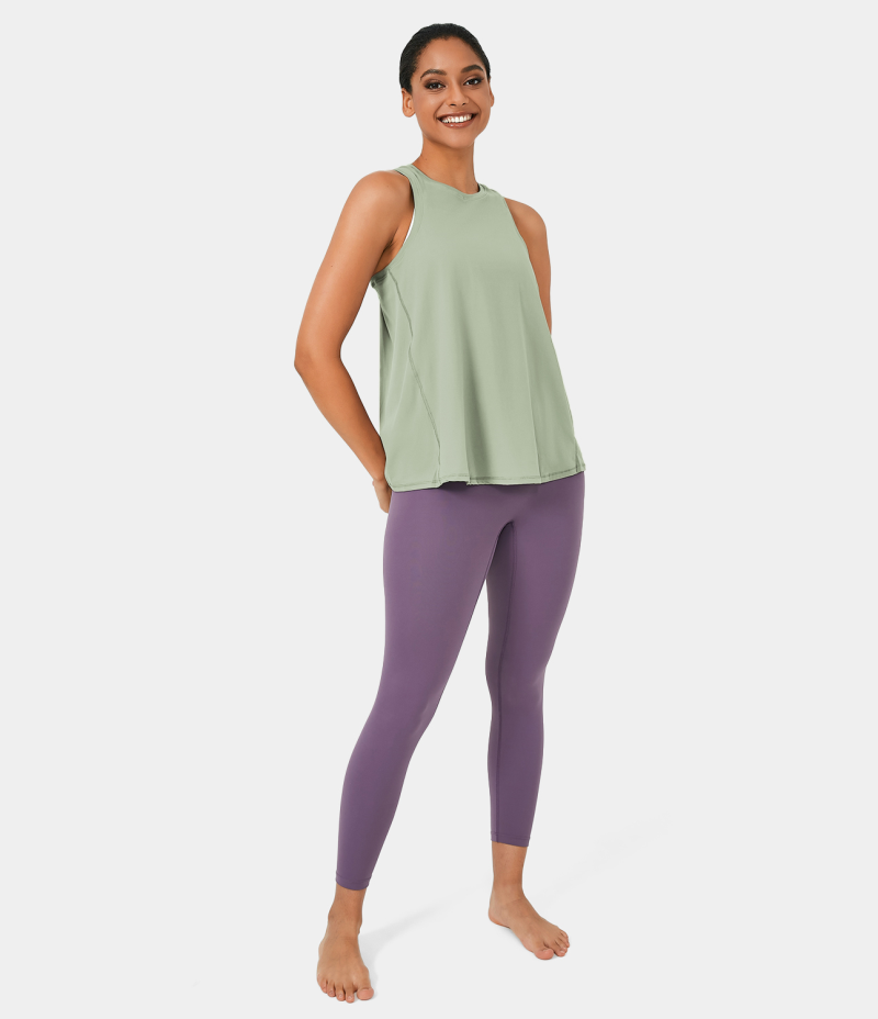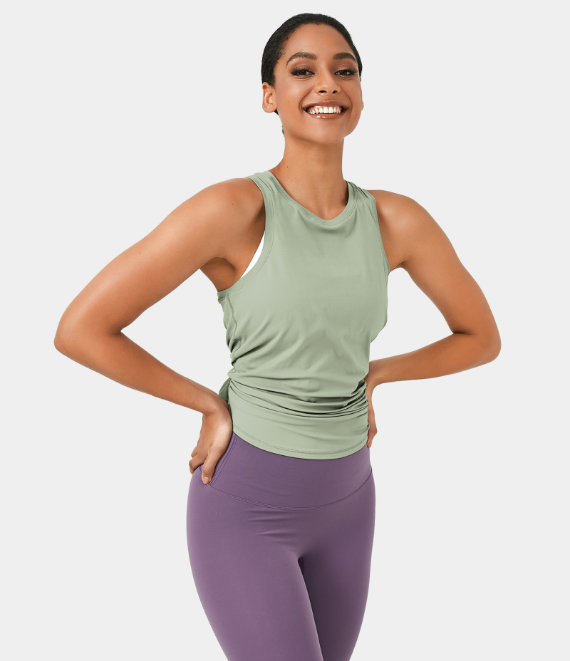Halara Split Tie Back Tank-No Bra Women's Tops Cameo Green | NIODBGH-39