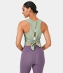 :: Halara Split Tie Back Tank-No Bra Women's Tops Cameo Green | NIODBGH-39