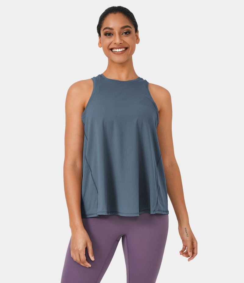 Halara Split Tie Back Tank-No Bra Women's Tops Genie in a Bottle - Steel Blue | DHNYAIF-91