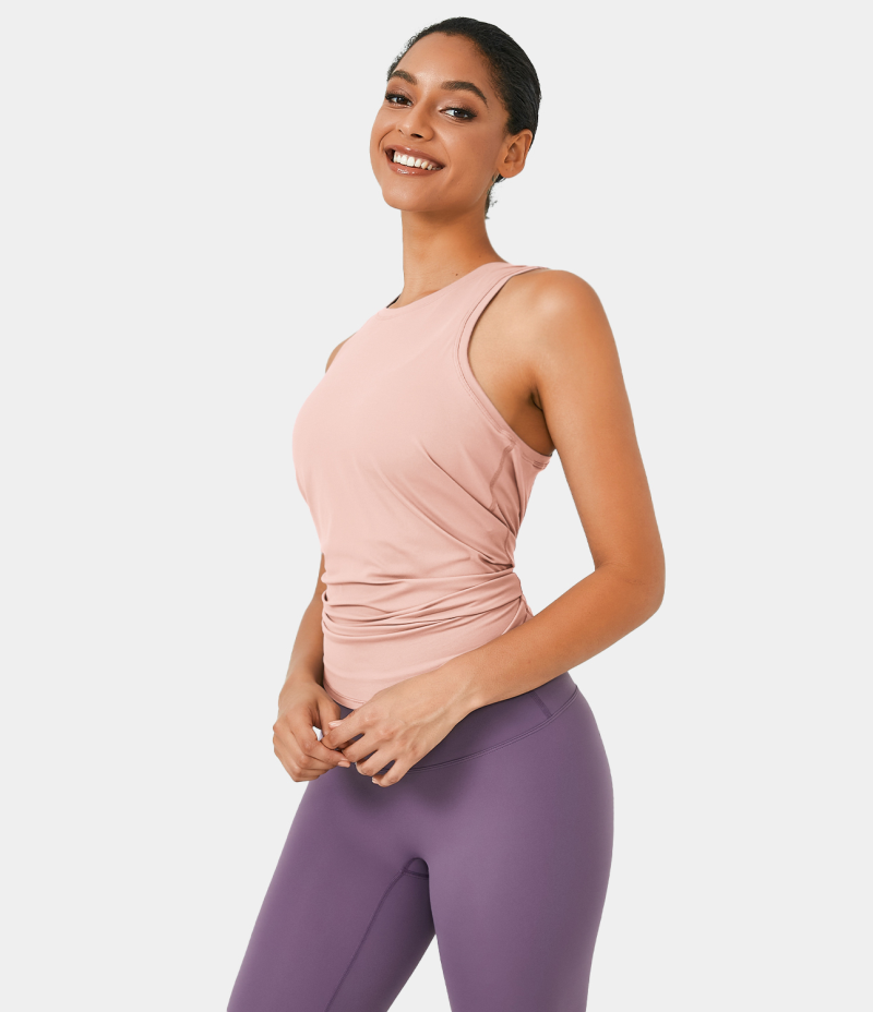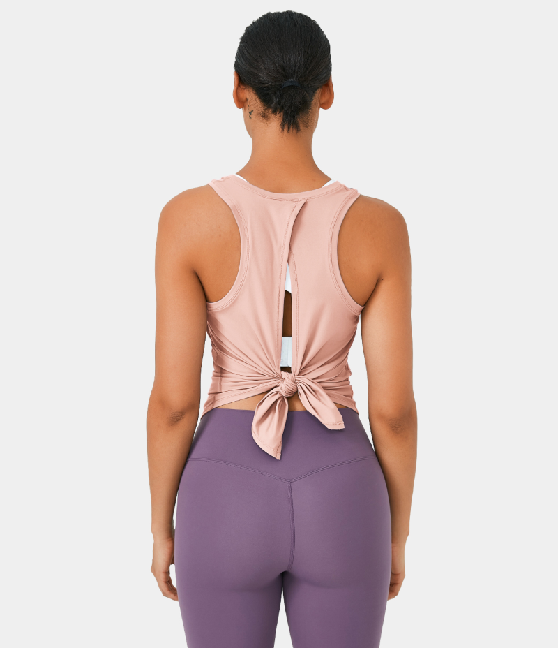 Halara Split Tie Back Tank-No Bra Women's Tops He Loves Me Not - Rose | OYFHDXC-76