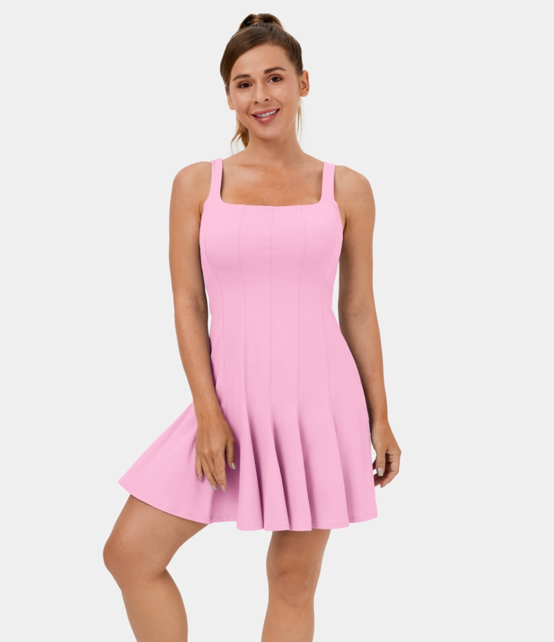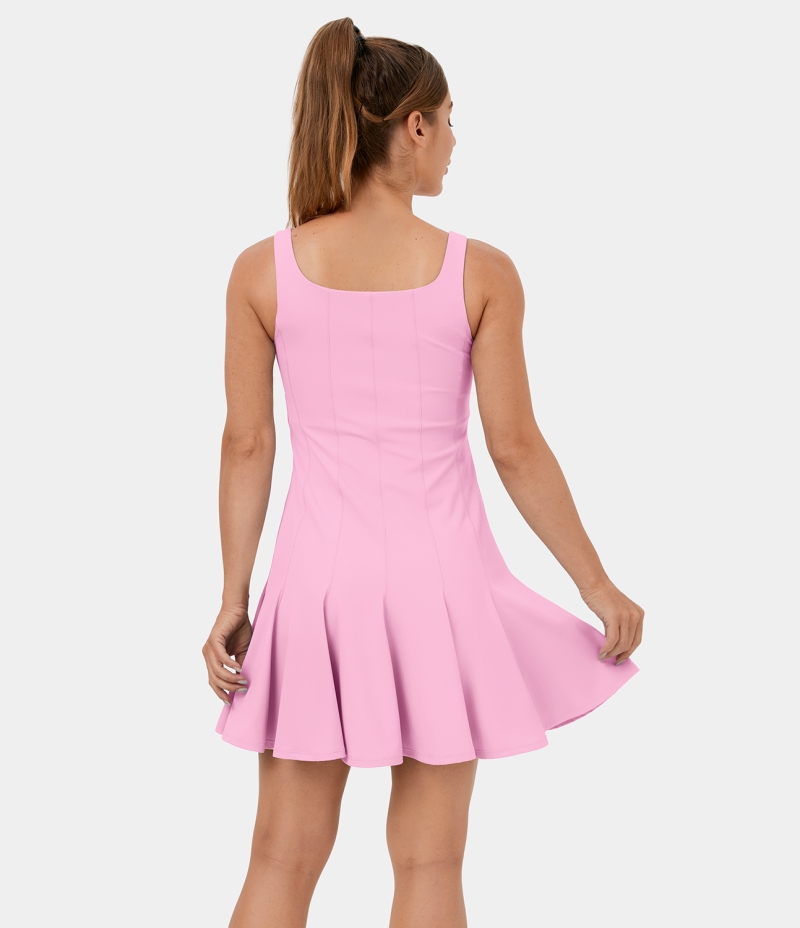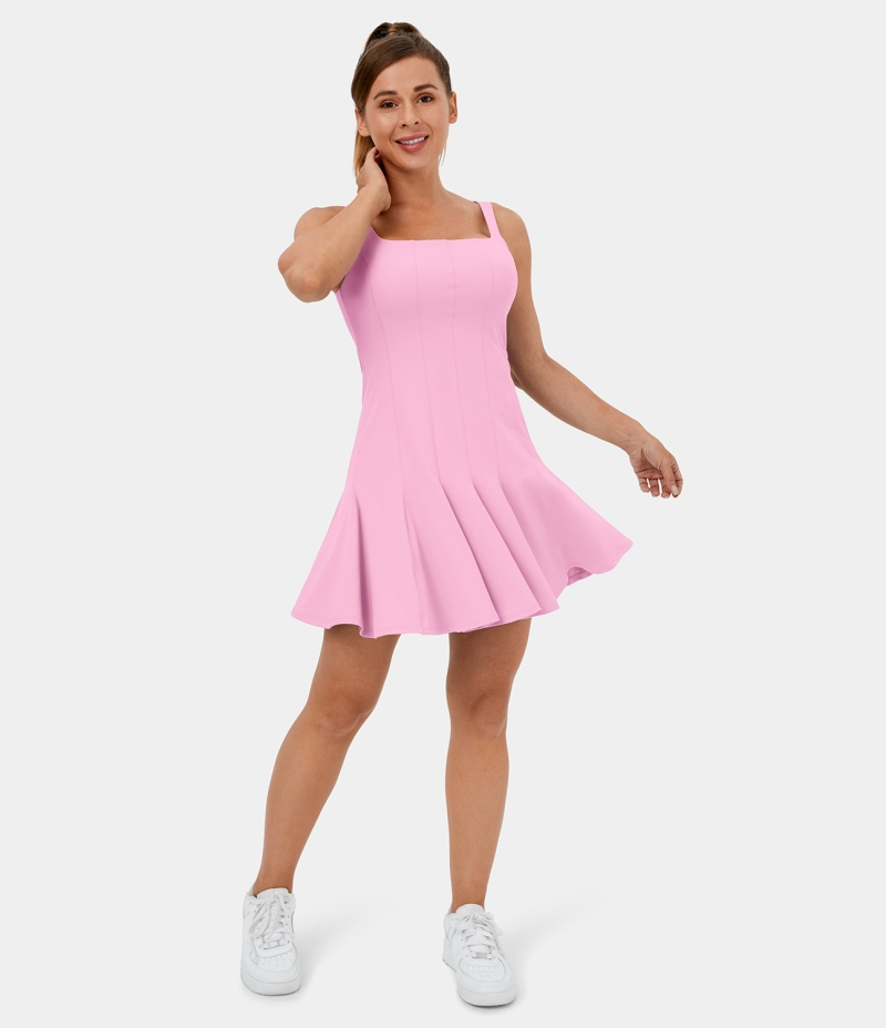 :: Halara Square Neck 2-Piece Side Pocket Flare Dance Women's Dress Pink Frosting | 810625-WHK