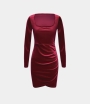 :: Halara Square Neck Long Sleeve Crossover Hem Bodycon Velvet Mini Casual Women's Dress Peacoat | 298136-MYT