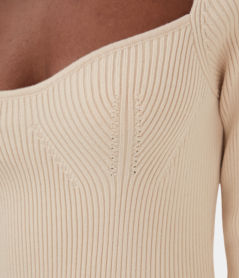 :: Halara Square Neck Split Hem Bodycon Casual Sweater Women's Tops Biscotti | MLQZNCV-17