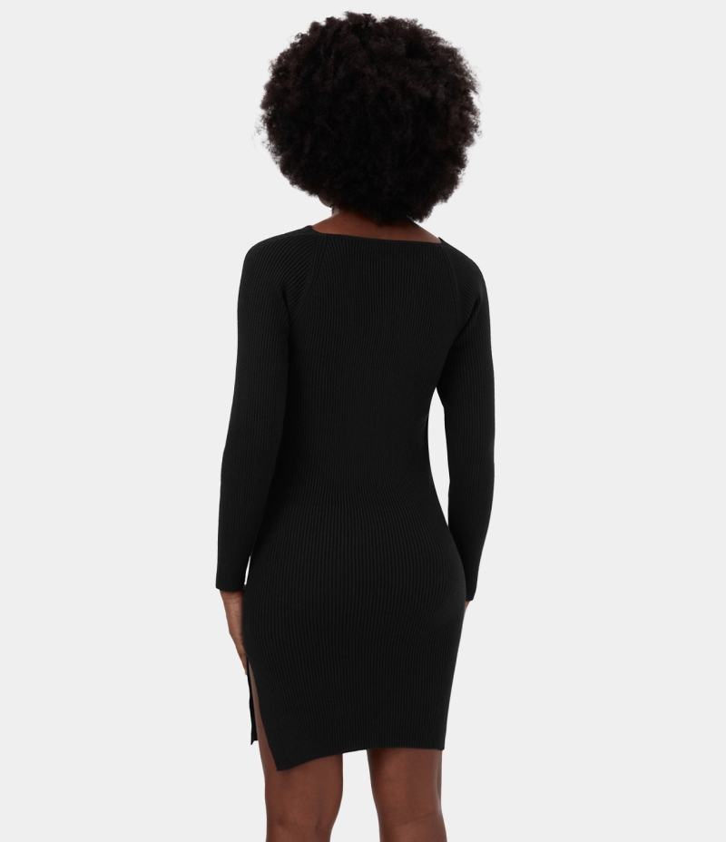 :: Halara Square Neck Split Hem Bodycon Casual Sweater Women's Tops Black | YTELUXI-98
