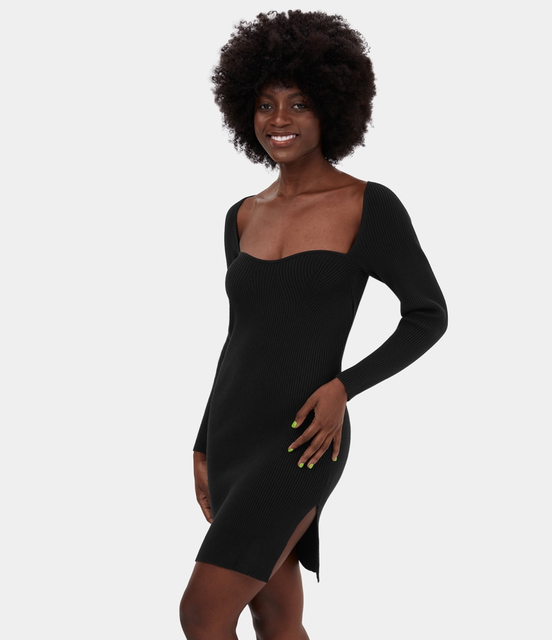 Halara Square Neck Split Hem Bodycon Casual Sweater Women's Tops Black | YTELUXI-98