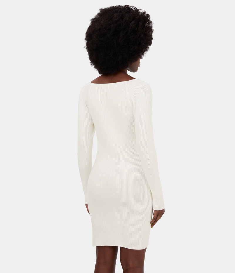 :: Halara Square Neck Split Hem Bodycon Casual Sweater Women's Tops White | TOMGBXF-23