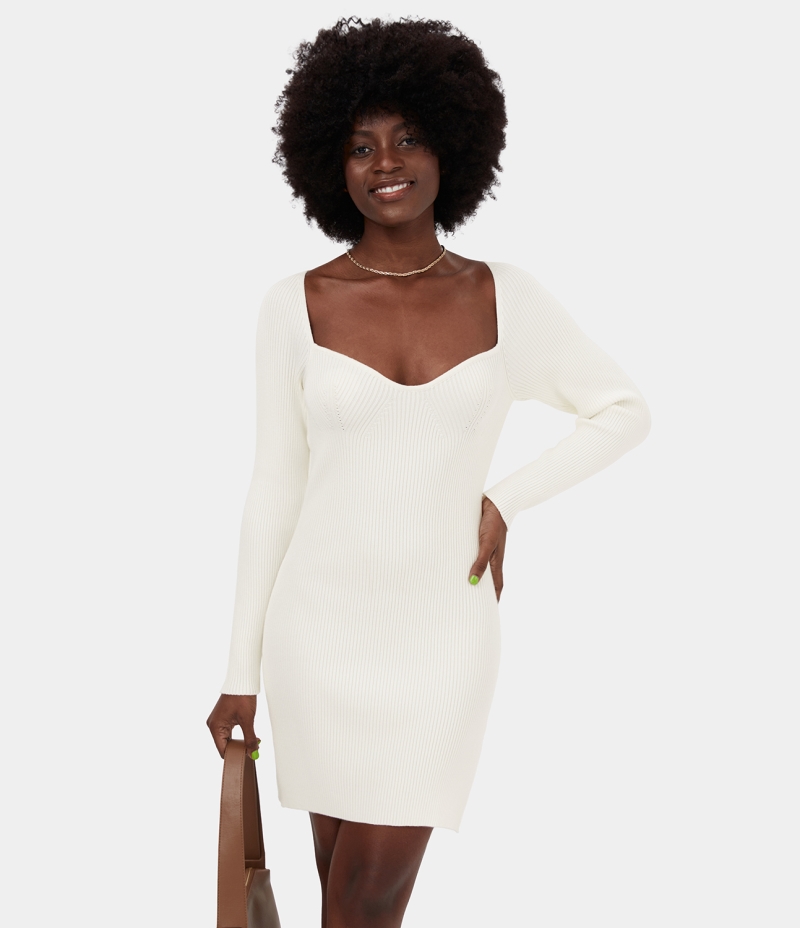 Halara Square Neck Split Hem Bodycon Casual Sweater Women's Tops White | TOMGBXF-23