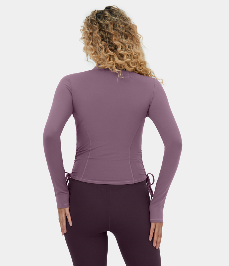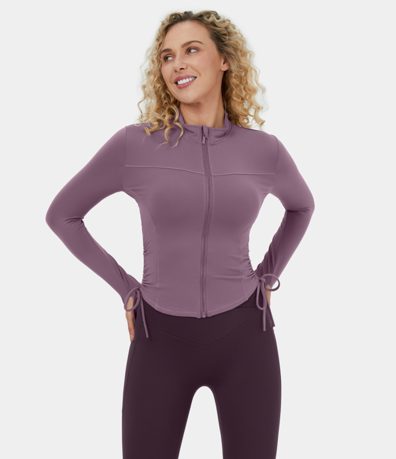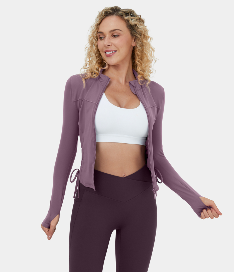 Halara Stand Collar Full Zip Side Drawstring Thumb Hole Cropped Yoga Jacket Women's Tops Grapeade | LZGSQEU-26