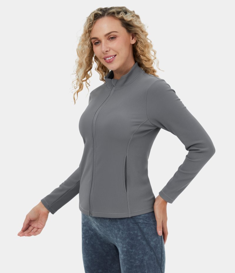 :: Halara Stand Collar Full Zip Side Pocket Cropped Fleece Casual Jacket Women's Tops Lava Smoke | VFUGITD-17