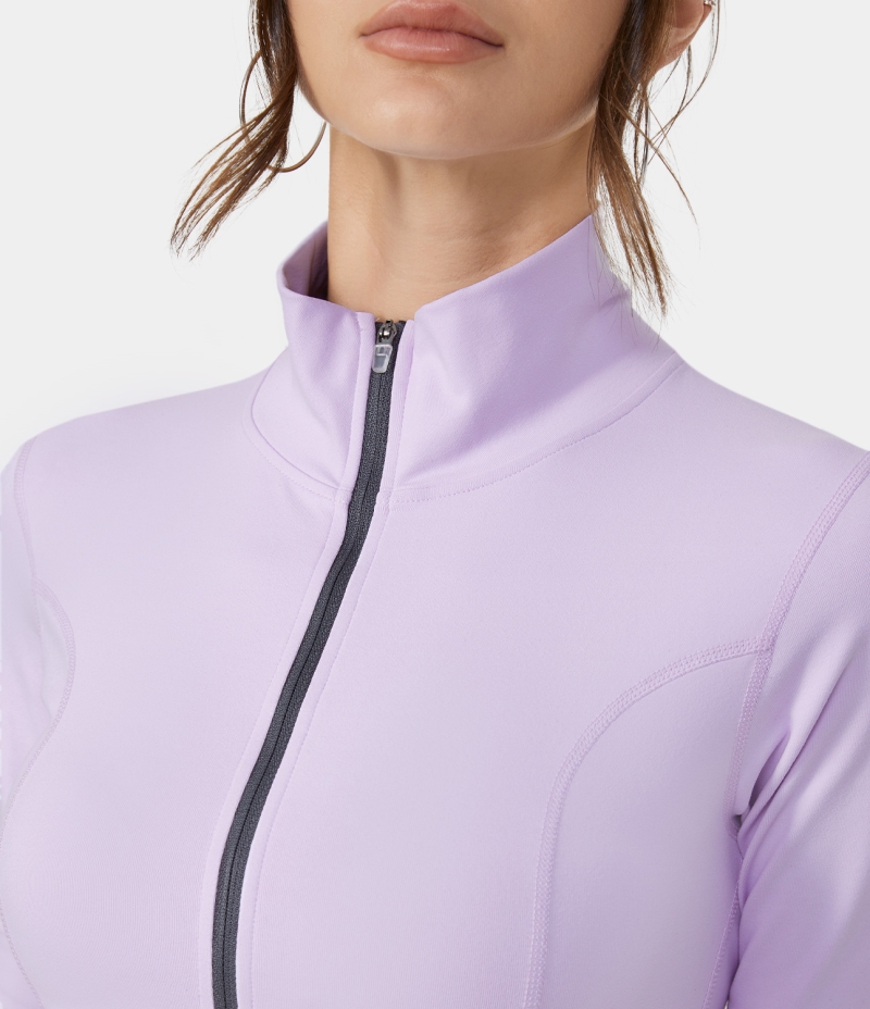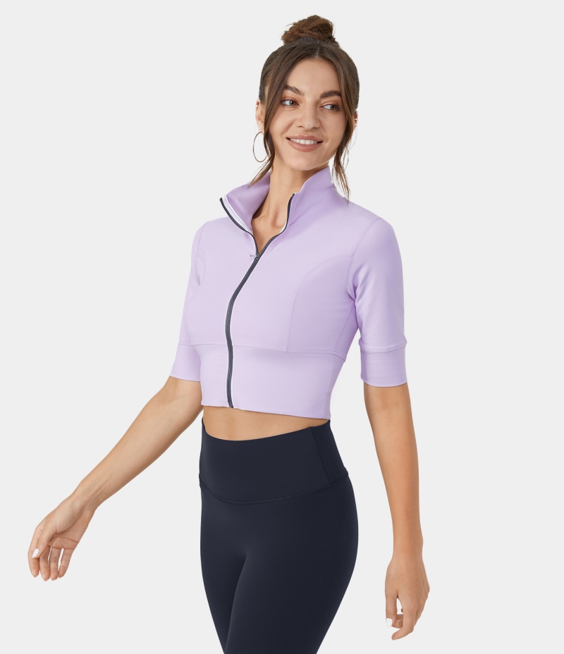 Halara Stand Collar Half Sleeve Zip Front Cropped Golf Sports Women's Tops Lavender Fog | PAEFWTJ-02