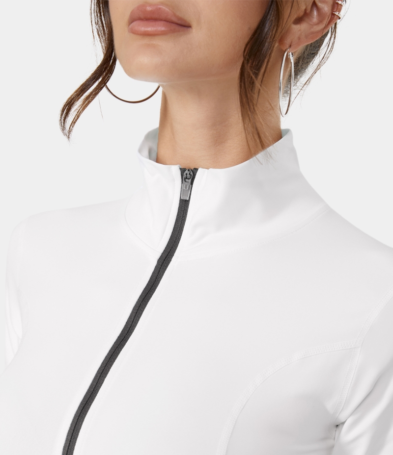 :: Halara Stand Collar Half Sleeve Zip Front Cropped Golf Sports Women's Tops White | DWGBURV-61