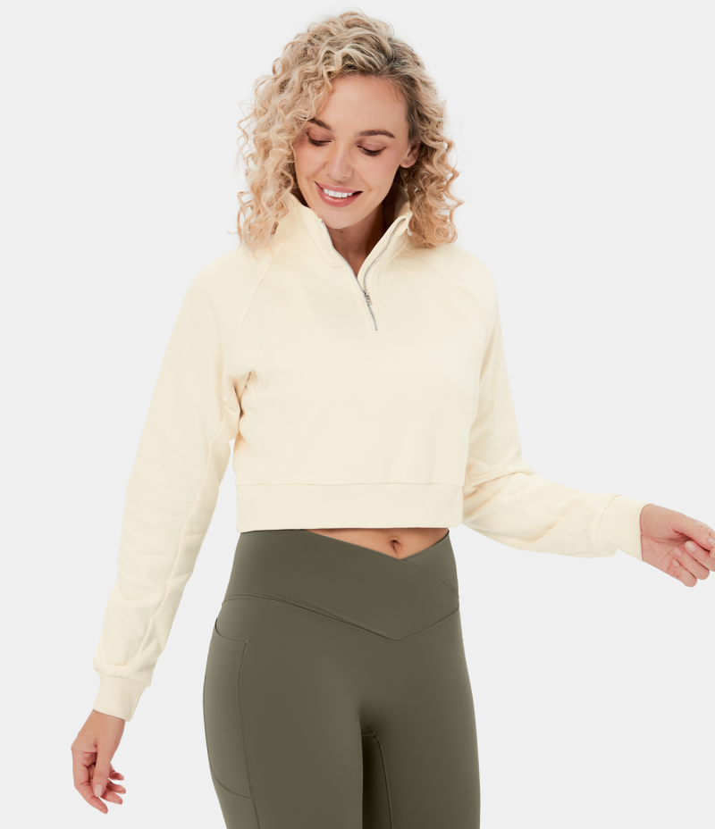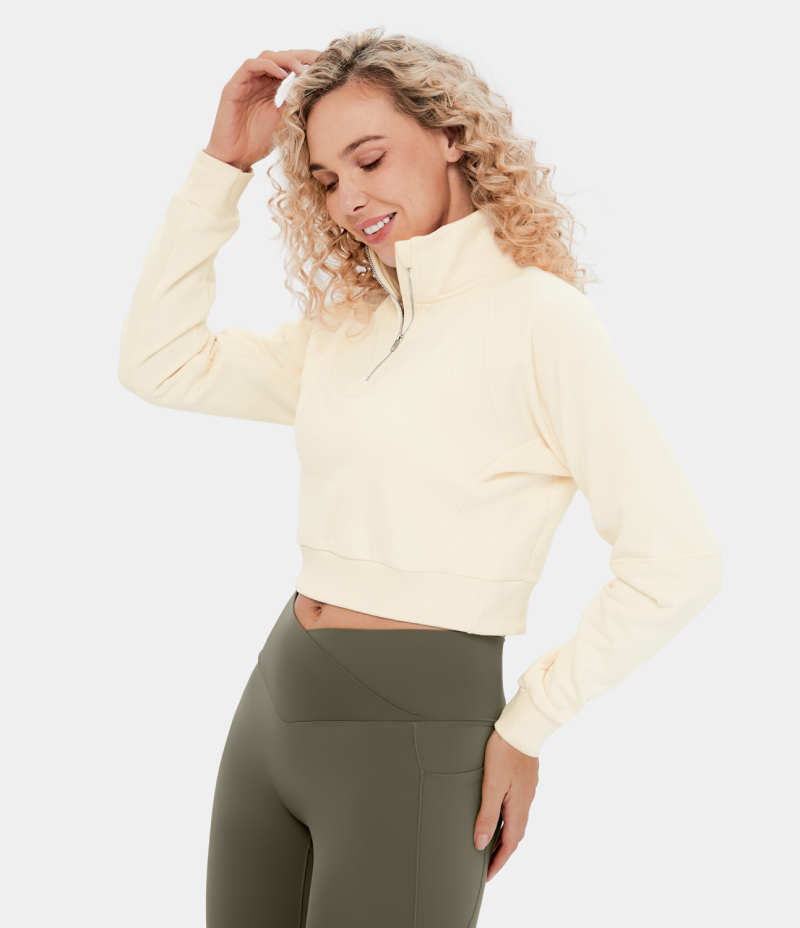 :: Halara Stand Collar Half Zip Cropped Fleece Casual Sweatshirt Women's Tops Solitary Star | GCAQWUX-32