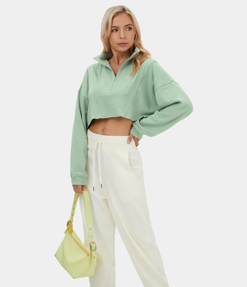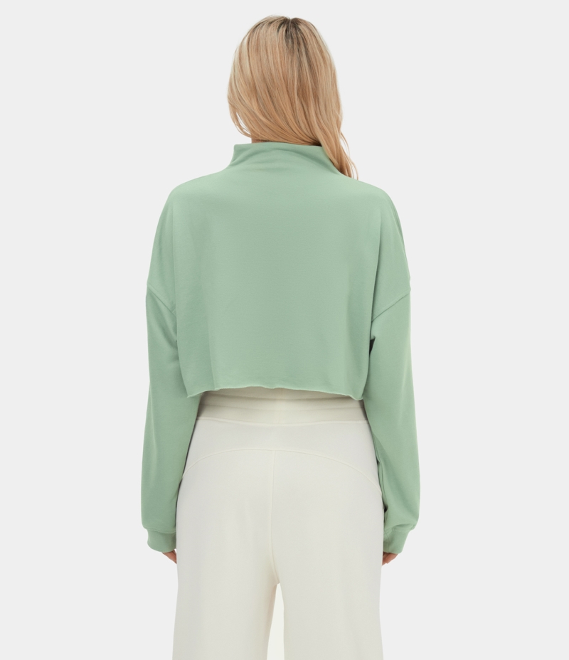 Halara Stand Collar Half Zip Raw Hem Cropped Casual Sweatshirt Women's Tops Smoke Green | LHZWCIP-30