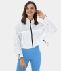 Halara Stand Collar Zip Front Drawstring Side Pocket Sheer Cropped Casual Jacket Women's Tops Orange Tiger | XGWNCTA-21
