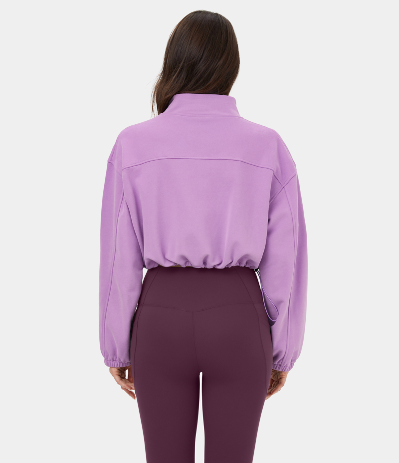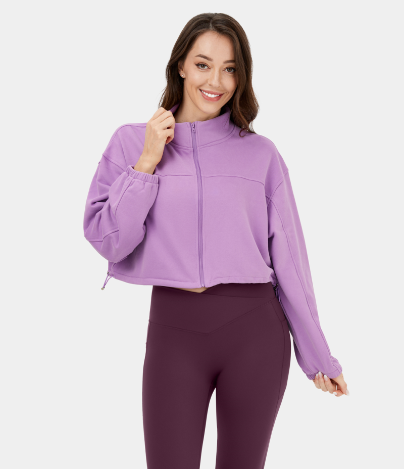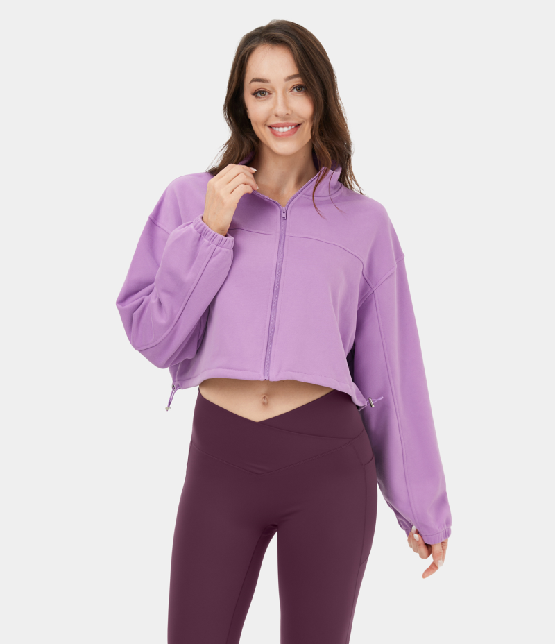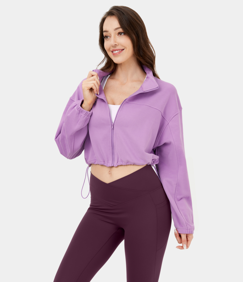 :: Halara Stand Collar Zipper Adjustable Drawcord Cropped Casual Sweatshirt Women's Tops Orchid Bloom | WLXGUQS-42