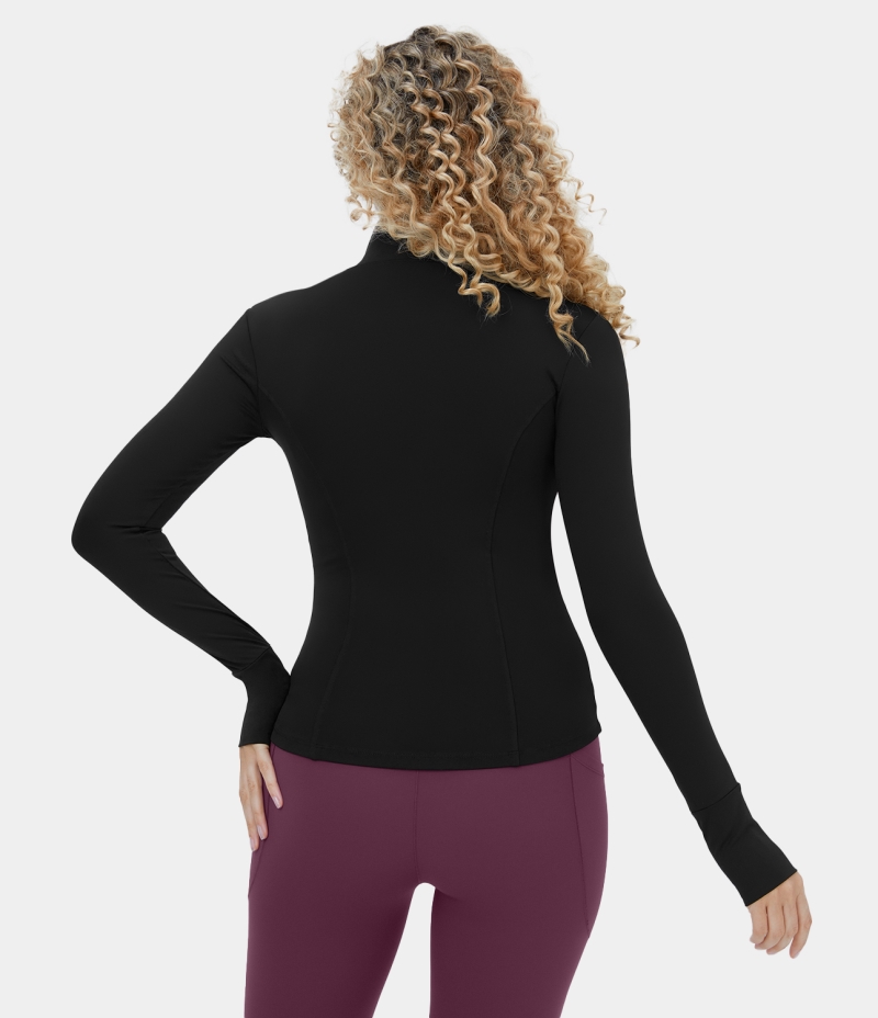 Halara Stand Collar Zipper Front Side Pocket Thumb Hole Cropped Yoga Jacket Women's Tops Black | GDUKYTA-52