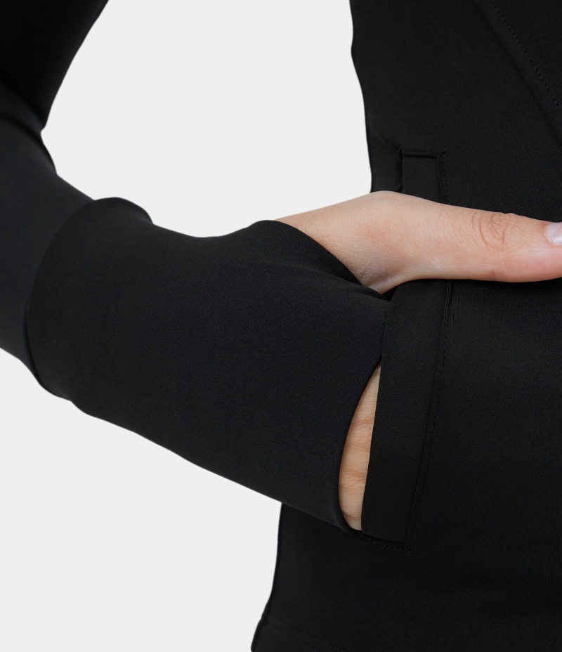 :: Halara Stand Collar Zipper Front Side Pocket Thumb Hole Cropped Yoga Jacket Women's Tops Black | GDUKYTA-52
