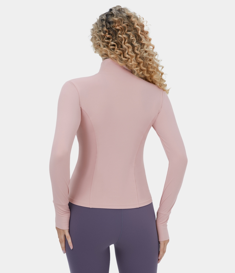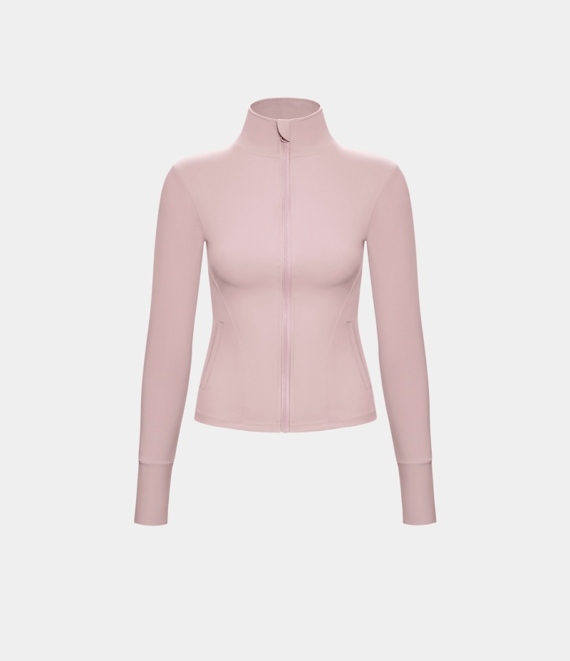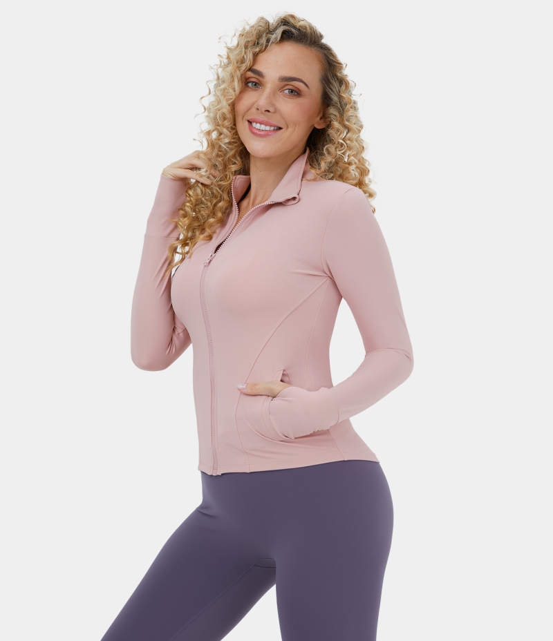 :: Halara Stand Collar Zipper Front Side Pocket Thumb Hole Cropped Yoga Jacket Women's Tops Lilac Pink | HGQRUID-03