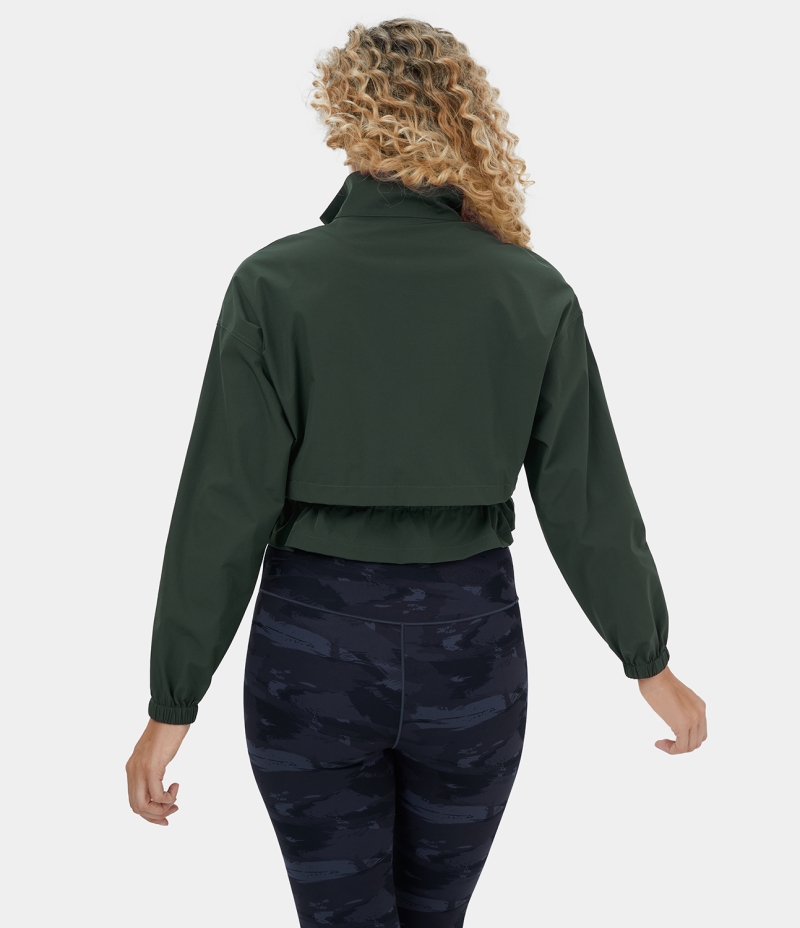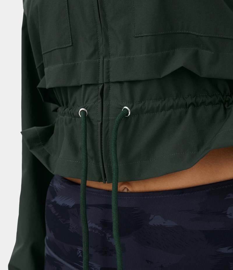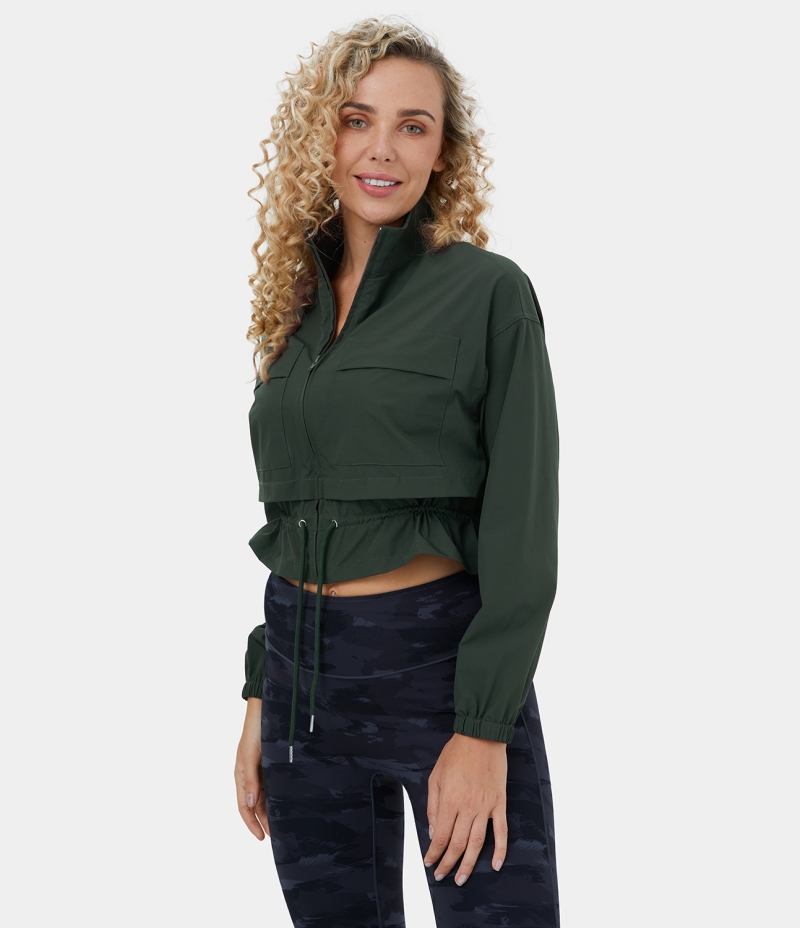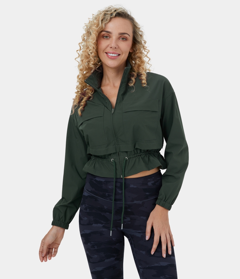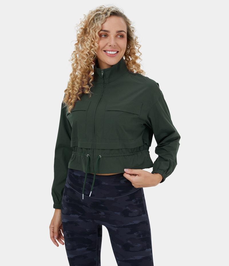 :: Halara Stand Collar Zipper Side Pocket Drawstring Cropped Casual Jacket Women's Tops Mountain View | NGHKJFZ-85
